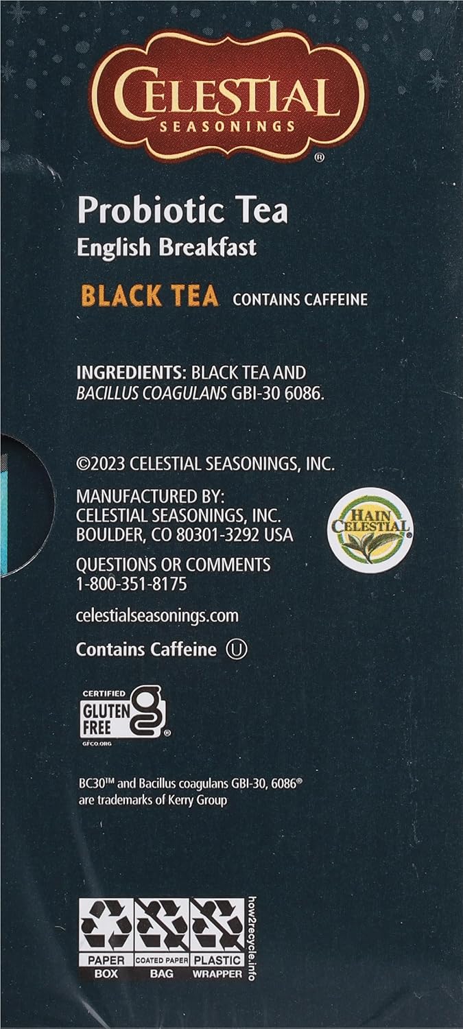 Celestial Seasonings Black Tea, Probiotic Tea, English Breakfast, 16 Count (Pack Of 6) (Packaging May Vary)