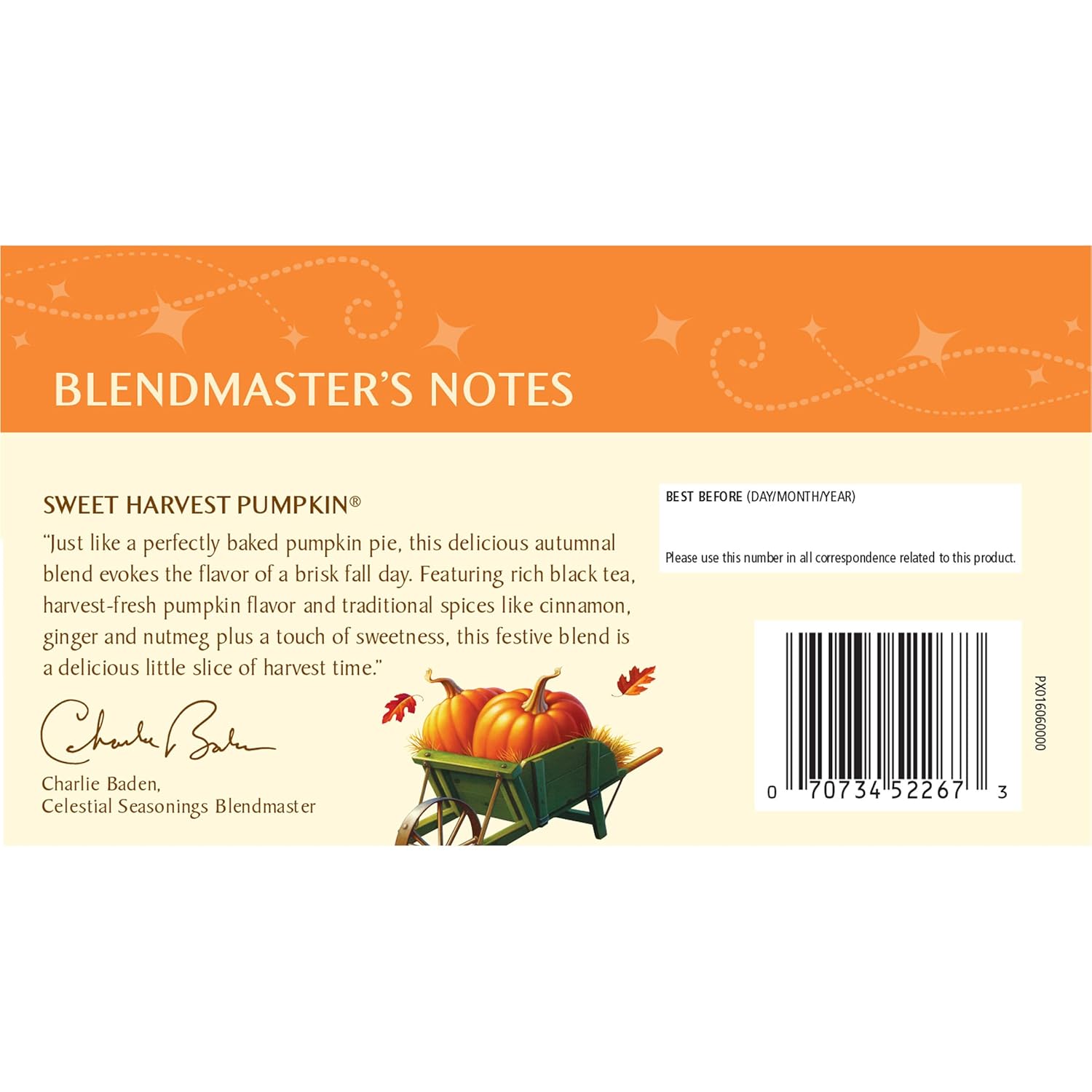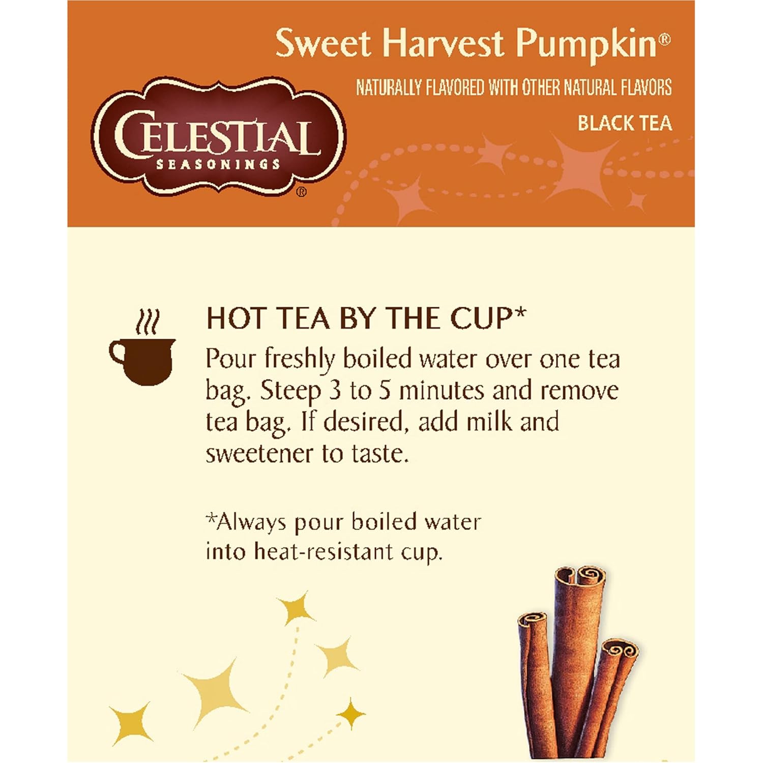Celestial Seasonings Black Tea, Sweet Harvest Pumpkin, Contains Caffeine, 18 Count (Pack Of 6)