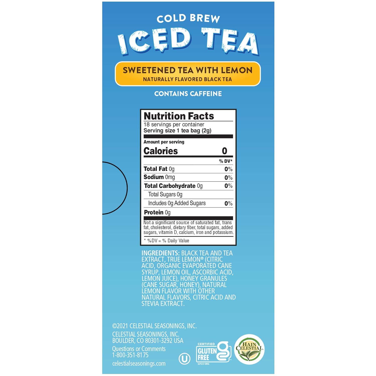 Celestial Seasonings Cold Brew Iced Tea, Sweetened Tea With Lemon, Contains Caffeine, 18 Tea Bags (Pack Of 6)