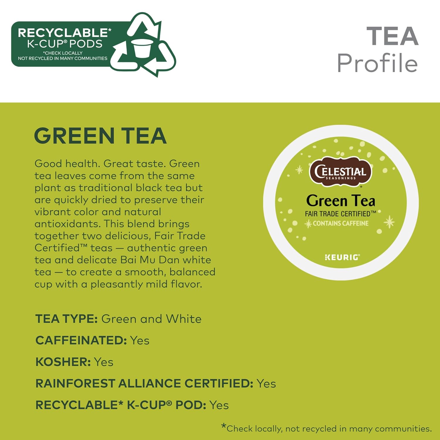 Good Health. Great Taste. Green Tea Leaves Come From The Same Plant As Traditional Black Tea, But Are Quickly Dried To Preserve Their Vibrant Color And Natural Antioxidants. This Blend Brings Together Two Delicious, Fair Trade Certified Teas – Authentic Green Tea And Delicate Bai Mu Dan White Tea – To Create A Smooth, Balanced Cup With A Pleasantly Mild Flavor. Compatible With Keurig K-Cup Pod Single Serve Coffee Makers. Introducing Recyclable* K-Cup Pods: Simple. Delicious. And Now Recyclable. Enjoy The Same Great-Tasting Coffee You Know And Love, And When You’Re Done Just Peel, Empty And Recycle. *Check Locally, Not Recycled In All Communities. Packaging May Vary
