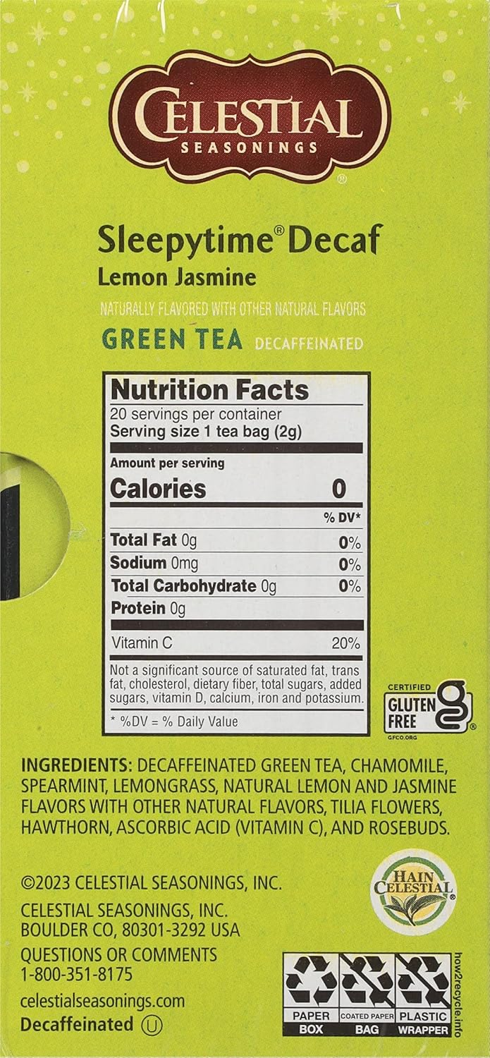 Celestial Seasonings Green Tea, Sleepytime Decaf Lemon Jasmine, Decaffeinated Sleep Tea, 20 Tea Bags (Pack Of 6) (Packaging May Vary)