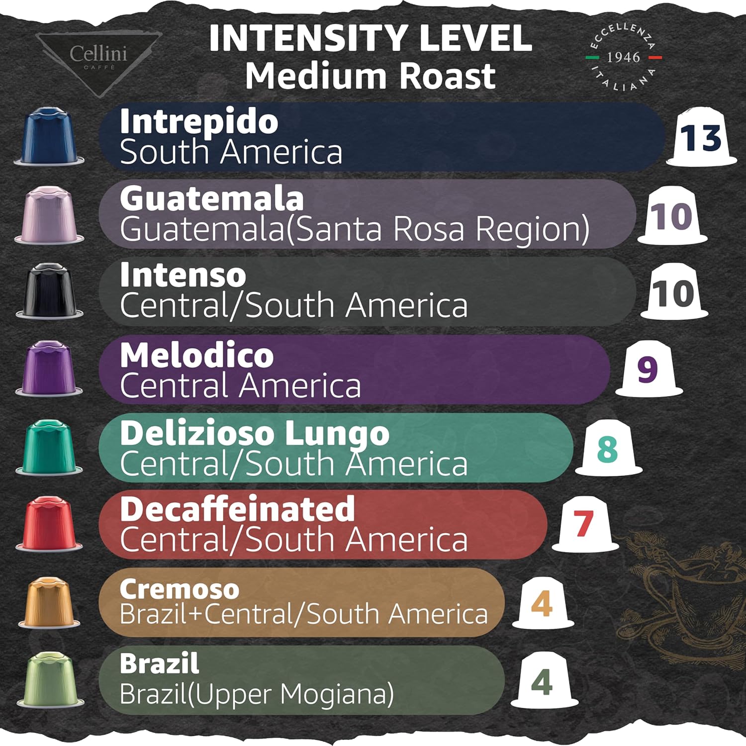 80 Capsule Variety Pack: Our Most Popular Coffee Roast Selections In One Box! Ideal For Preparing Espresso Ristretto Lungo And Latte. Choose From A Wide Variety Of Medium And Dark Intensity Single Origin And Blends. Roasted And Packaged In Italy Since 1946