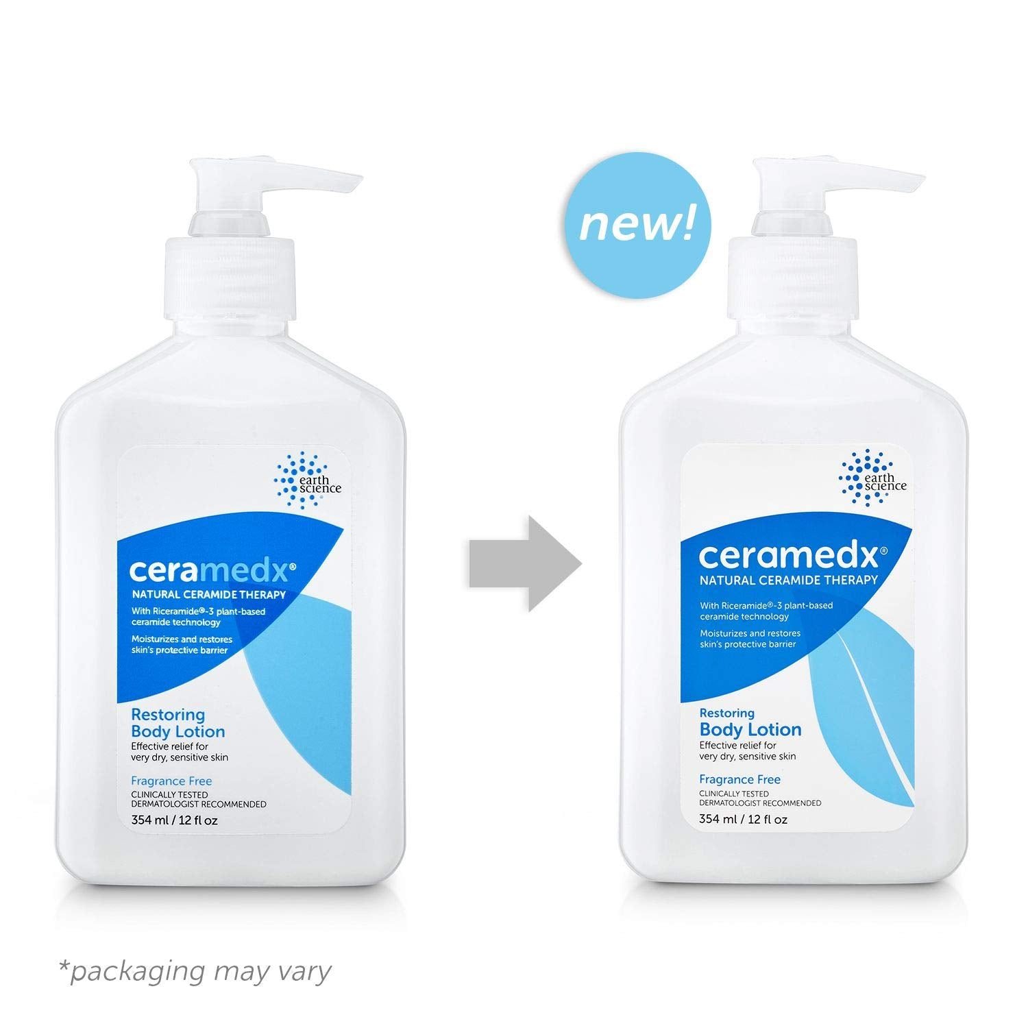 About this item NATURAL CERAMIDE THERAPY LOTION FOR DRY SKIN: This restoring, perfume-free body lotion keeps skin soft and comfortably moisturized. It has a non-greasy, ultra-hydrating and long-lasting formula with hyaluronic acid and shea butter to maintain skin's moisture. HAND AND BODY LOTION: Apply twice daily or as needed to soothe and relieve dry skin. With regular use, it renews skin by improving its moisture-retaining capacity, returning skin to a healthier condition. This skin lotion is not sticky. Exclusive Riceramide-3 Complex absorbs into the skin to nourish, hydrate and replenish the skin’s natural moisture barrier and support skin renewal. The ceramides, moisturizers and active ingredients in Ceramedx products are plant-based and not chemically or synthetically derived. All Ceramedx products are dermatologist recommended, pH balanced, steroid free, paraben free, cruelty free, vegan, gluten free and non-GMO. From the makers of Earth Science, nature-inspired beauty and personal care trusted for over 35 years. › See more product details,NATURAL CERAMIDE THERAPY LOTION FOR DRY SKIN: This restoring, perfume-free body lotion keeps skin soft and comfortably moisturized. It has a non-greasy, ultra-hydrating and long-lasting formula with hyaluronic acid and shea butter to maintain skin's moisture,HAND AND BODY LOTION: Apply twice daily or as needed to soothe and relieve dry skin. With regular use, it renews skin by improving its moisture-retaining capacity, returning skin to a healthier condition. This skin lotion is not sticky,Exclusive Riceramide-3 Complex absorbs into the skin to nourish, hydrate and replenish the skin’s natural moisture barrier and support skin renewal,The ceramides, moisturizers and active ingredients in Ceramedx products are plant-based and not chemically or synthetically derived,All Ceramedx products are dermatologist recommended, pH balanced, steroid free, paraben free, cruelty free, vegan, gluten free and non-GMO. From the makers of Earth Science, nature-inspired beauty and personal care trusted for over 35 years