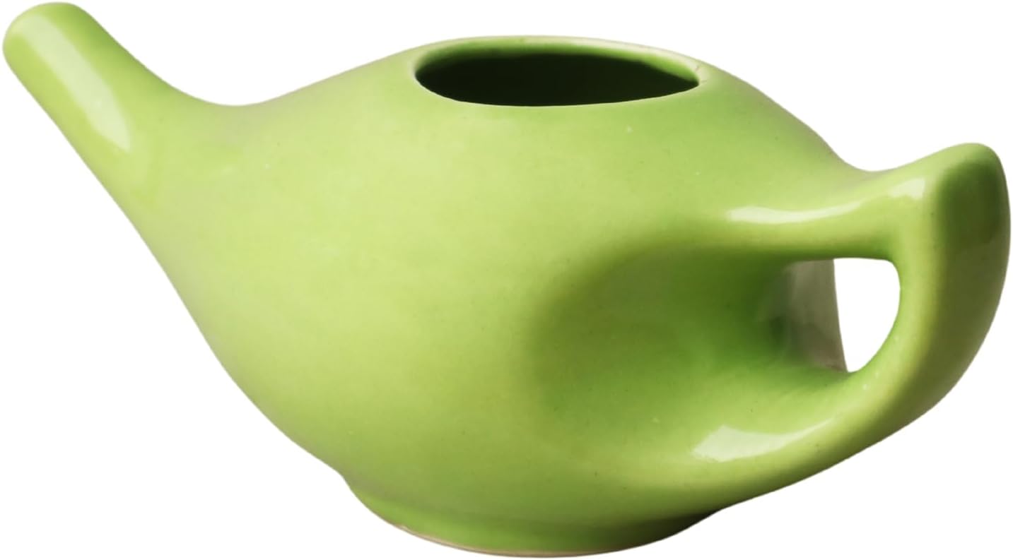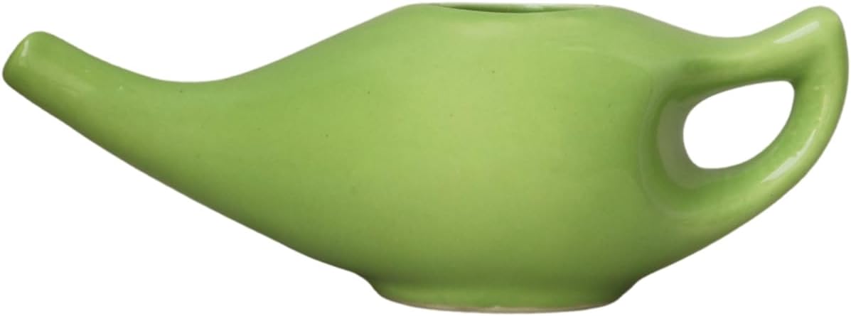 Ceramic Neti Pot, Green Color, is LEAD-Free, DISHWASHER Friendly