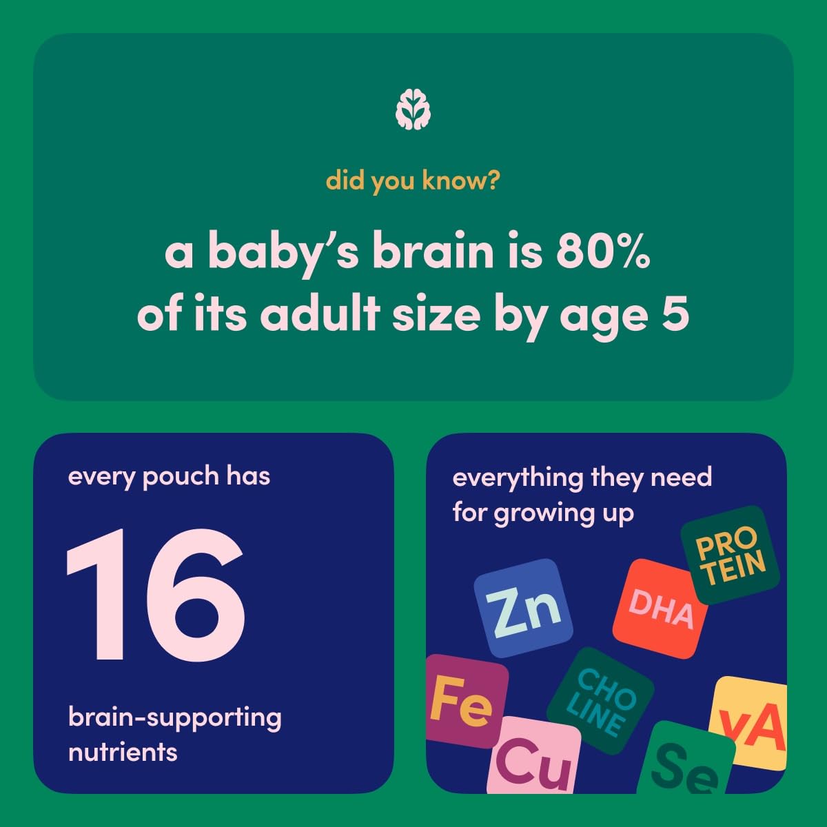 Supports Cognitive Development - Cerebelly Organic Baby Food Pouches Are The Only Organic Fruit Pouch (And Veggie Pouch) That Delivers 16 Key Brain-Supporting Nutrients Studied By Our Founder. A Delicious Blend, High In Zinc, Vitamin E, Selenium, And B-12 Supports The Development Of Motor Skills Like Movement Control And Stabilization, And Cognitive Abilities Like Emotional Expression, Problem Solving, And Memory. Other Veggie Pouches For Toddlers Lack The Quality Brain Nutrients Babies Need!