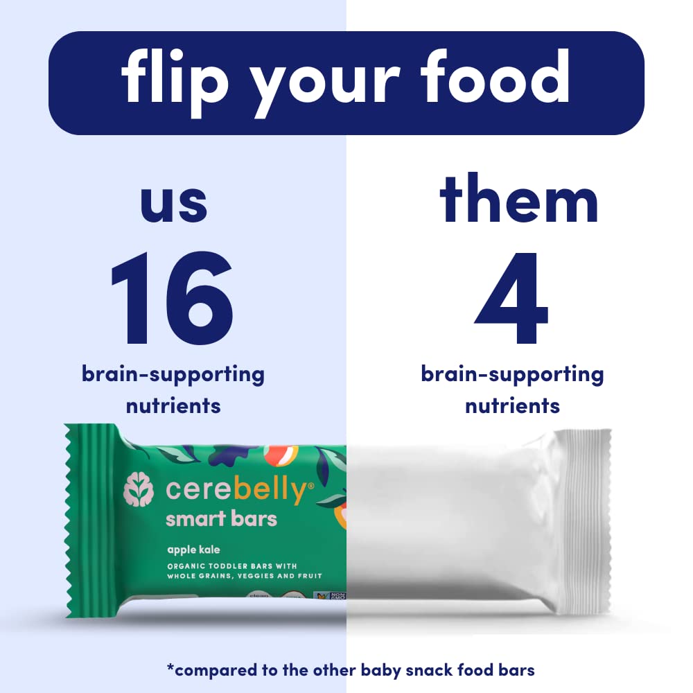 Cerebelly Toddler Snack Bars – Organic Apple Kale Smart Bars (Pack of 30), Healthy Snack Bars for Kids - 16 Brain-supporting Nutrients, Made with Gluten Free Ingredients, Nut Free, No Added Sugar