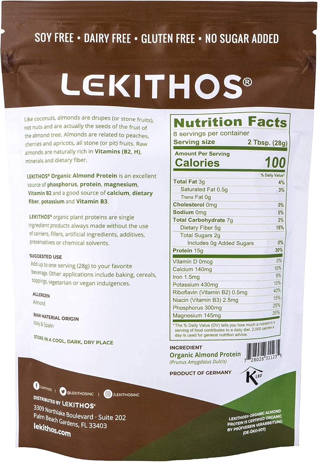 About this item PLANT BASED: 15g Protein ? 5g Dietary Fiber ? Vitamins B2 + B3 ? Minerals CERTIFIED: USDA Organic ? Vegan ? Non-GMO Project Verified ? Kosher ONE INGREDIENT: Organic Almond Protein – nothing else! DIET FRIENDLY: Soy Free ? Dairy Free ? Gluten Free ? No Sugar Added Raw Material from Italy & Spain. Made In Germany. › See more product details,PLANT BASED: 15g Protein ? 5g Dietary Fiber ? Vitamins B2 + B3 ? Minerals,CERTIFIED: USDA Organic ? Vegan ? Non-GMO Project Verified ? Kosher,ONE INGREDIENT: Organic Almond Protein – nothing else!,DIET FRIENDLY: Soy Free ? Dairy Free ? Gluten Free ? No Sugar Added,Raw Material from Italy & Spain. Made In Germany