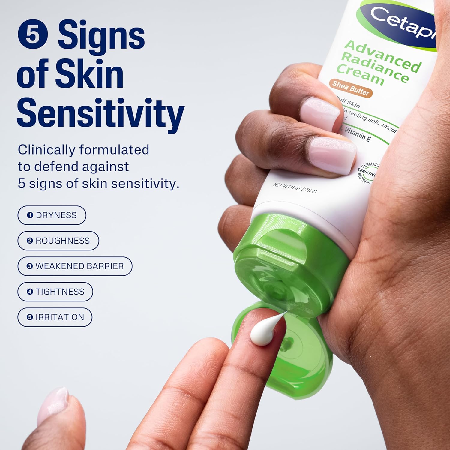 CETAPHIL Advanced Radiance Cream is formulated with shea butter to nourish skin and leave it feeling soft, smooth and restored. This rich face & body cream is clinically proven to lock in moisture and replenish dry, dull skin for 48 hours. Long lasting hydration visibly enhances skin tone, texture and luminosity. Enriched with safflower seed oil to smooth and soften dry skin, and vitamin E to support moisture barrier function. 94% reported softer and smoother skin in 1 week. This advanced formula helps to defend against 5 signs of skin sensitivity. This nourishing cream is hypoallergenic, fragrance free, paraben free and non-comedogenic, suitable for even the most sensitive skin and dermatologist developed for all skin tones and types. For complete care of your dry, dull skin, use together with CETAPHIL Advanced Radiance Lotion for optimal skin hydration,CETAPHIL ADVANCED RADIANCE FACE & BODY CREAM: Enriched with a high concentration of shea butter to deeply moisturize and nourish skin while helping to prevent visibly dry skin from coming back,REVITALIZES WITH 48 HOUR HYDRATION: Locks in moisture to hydrate continuously dry skin for up to 48 hours, especially good for targeting and smoothing drier areas like hands, feet, knees and elbows,REVEALS MORE RADIANT SKIN: Deeply hydrating formula visibly enhances skin's texture and luminosity to reveal glowing skin after just 1 use,DERMATOLOGIST RECOMMENDED for Sensitive Skin,DEVELOPED FOR EVEN THE MOST SENSITIVE SKIN: The hypoallergenic, non-comedogenic formula is free of parabens and fragrance
