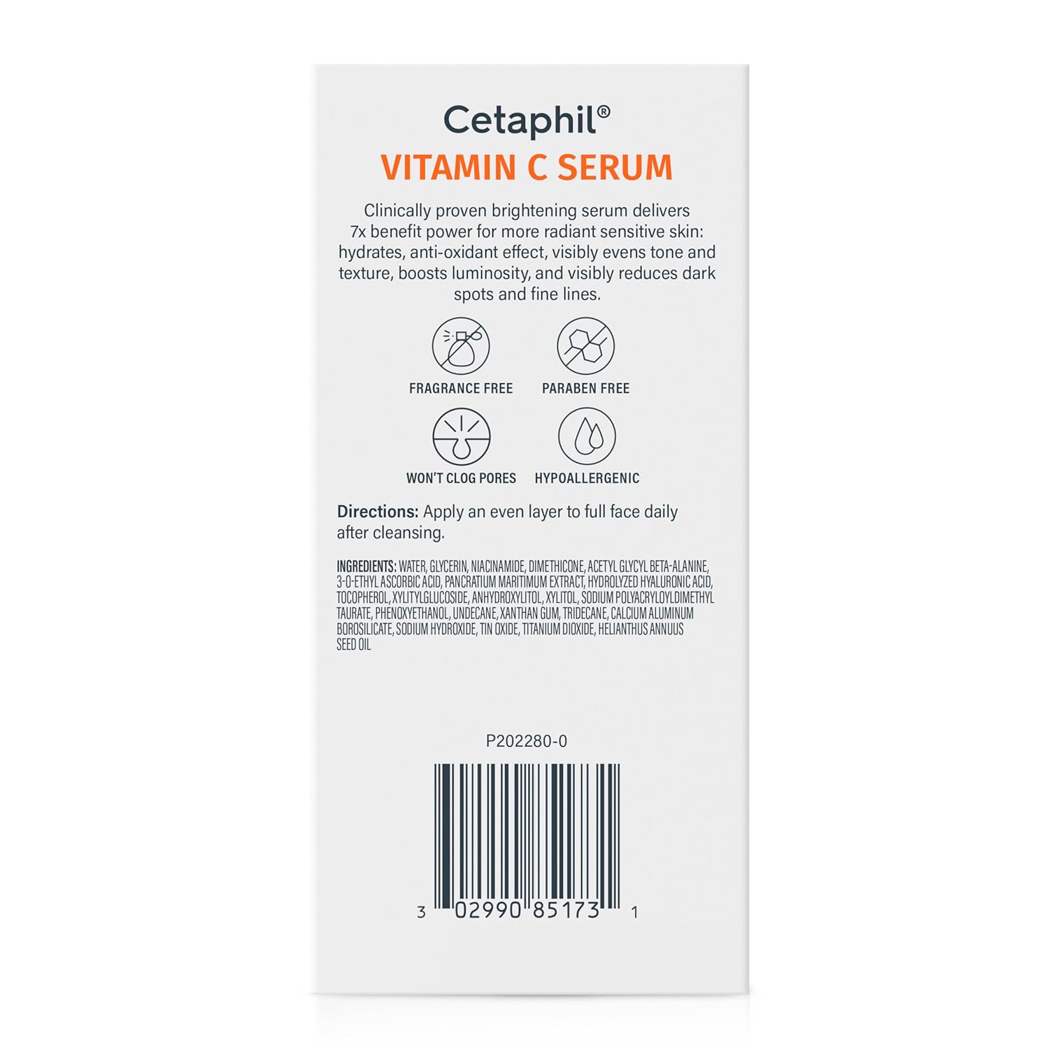 Cetaphil Vitamin C Serum, Visibly Reduces Look Of Dark Spots And Hyperpigmentation, Formulated With Niacinamide, Designed For Sensitive Skin, Fragrance Free, Dermatologist Tested, 1Oz