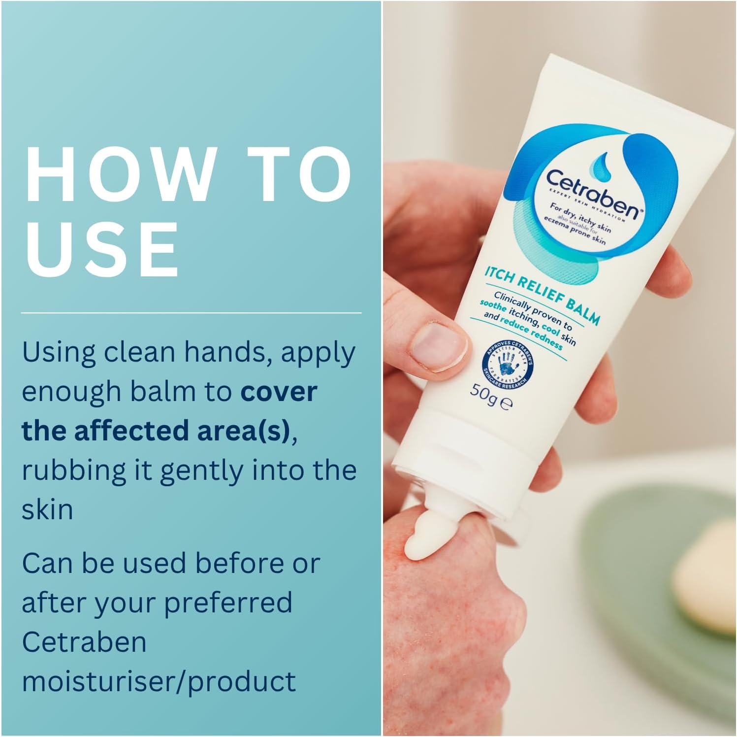 Cetraben Itch Relief Balm, For Dry, Itchy, Sensitive And Eczema-Prone Skin, Clinically Proven To Soothe Itching, Cool Skin, And Reduce Redness. Relieves Flare-Up Patches, Fragrance Free, 1 X 50 Ml