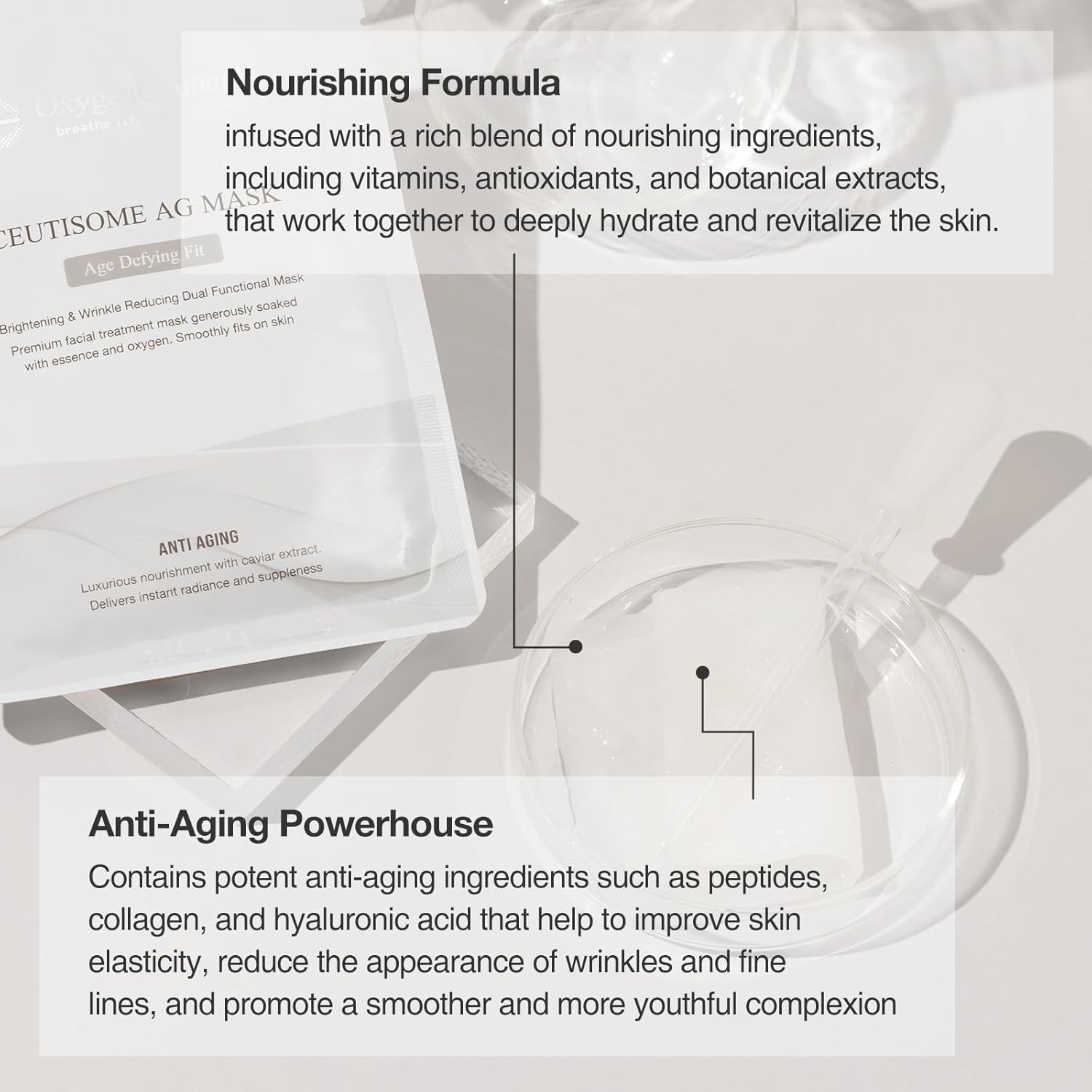 About this item CEUTISOME AG MASK FOR NOURISHING & MOISTURIZING SKIN: This mask is highly nourishing and moisturizing. The AG Mask is formulated to support smoother, more radiant, and more long lasting hydrated skin PREMIUM KOREAN SKIN CARE SOLUTION: This innovative facial AG Mask is a K-beauty favorite. The AG Mask improves skin complexion, softens the skin, supports refreshed appearance of skin, and helps improves the appearance of fine lines. ANTI-WRINKLE & SKIN FIRMING EFFECTS: The AG Mask is infused with high-quality Sturgeon Caviar Extract that is rich in Amino Acid, Omega-3, Vitamin A etc. Caviar extract has been used to help provide deep hydration and supports the skin’s natural appearance for a smoother, more youthful-looking complexion PREMIUM SKINCARE FOR PROFESSIONAL RESULTS: OxygenCeuticals delivers spa-quality skincare to your daily routine with pharmaceutical-grade ingredients and advanced formulation technology; used by professionals for visible, long-lasting results and enhanced skin health. DERMATOLOGIST-APPROVED FOR ADVANCED CARE: Used by leading dermatologists and aesthetic experts, OxygenCeuticals is ideal for pre- and post-treatment care; used in over 600 aesthetic clinics in South Korea to support sensitive and treated skin. See more product details,CEUTISOME AG MASK FOR NOURISHING & MOISTURIZING SKIN: This mask is highly nourishing and moisturizing. The AG Mask is formulated to support smoother, more radiant, and more long lasting hydrated skin,PREMIUM KOREAN SKIN CARE SOLUTION: This innovative facial AG Mask is a K-beauty favorite. The AG Mask improves skin complexion, softens the skin, supports refreshed appearance of skin, and helps improves the appearance of fine lines,ANTI-WRINKLE & SKIN FIRMING EFFECTS: The AG Mask is infused with high-quality Sturgeon Caviar Extract that is rich in Amino Acid, Omega-3, Vitamin A etc. Caviar extract has been used to help provide deep hydration and supports the skin’s natural appearance for a smoother, more youthful-looking complexion,PREMIUM SKINCARE FOR PROFESSIONAL RESULTS: OxygenCeuticals delivers spa-quality skincare to your daily routine with pharmaceutical-grade ingredients and advanced formulation technology; used by professionals for visible, long-lasting results and enhanced skin health,DERMATOLOGIST-APPROVED FOR ADVANCED CARE: Used by leading dermatologists and aesthetic experts, OxygenCeuticals is ideal for pre- and post-treatment care; used in over 600 aesthetic clinics in South Korea to support sensitive and treated skin