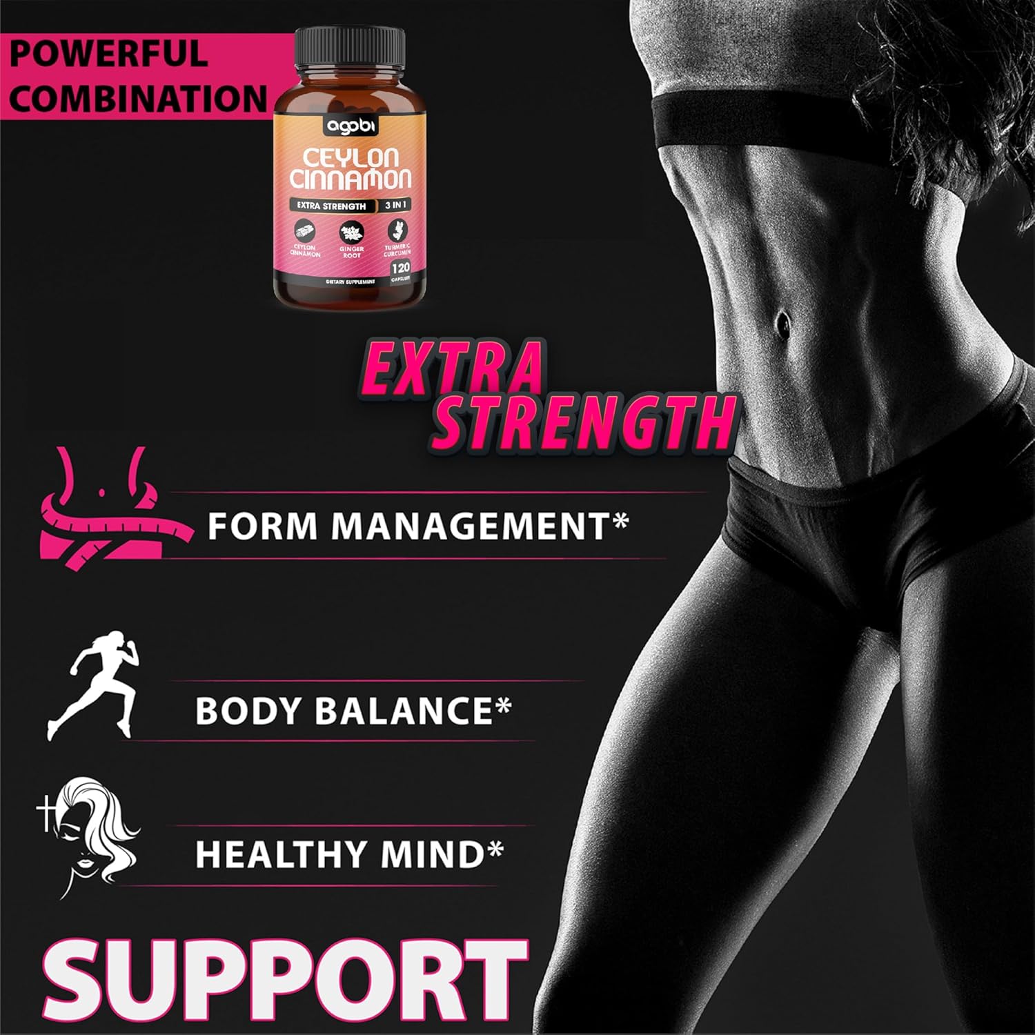 About this item Potent Ceylon Cinnamon Supplements with Ceylon Cinnamon Bark, Ginger Root Powder, Turmeric Curcumin Root; A great choice for elevating your well-being. Just 3 Ceylon pill daily; Convenient 40-day supply with 1 pack 120-pill bottle; Bring your health to the next level - Start today! Tested! All Agobi Supplements are made by cGMP, ISO, and FDA-registered manufacturer. Gluten-free, non-GMO, plant-based, keto-friendly, vegan. Quality assured by USA lab. Maintain a healthy balance by incorporating exercise, and herbal supplements into your lifestyle for a vibrant and fulfilling life. Choosing Agobi - Choosing to make a difference! See more product details, Potent Ceylon Cinnamon Supplements with Ceylon Cinnamon Bark, Ginger Root Powder, Turmeric Curcumin Root; A great choice for elevating your well-being, Just 3 Ceylon pill daily; Convenient 40-day supply with 1 pack 120-pill bottle; Bring your health to the next level - Start today!, Tested! All Agobi Supplements are made by cGMP, ISO, and FDA-registered manufacturer. Gluten-free, non-GMO, plant-based, keto-friendly, vegan. Quality assured by USA lab, Maintain a healthy balance by incorporating exercise, and herbal supplements into your lifestyle for a vibrant and fulfilling life. Choosing Agobi - Choosing to make a difference!