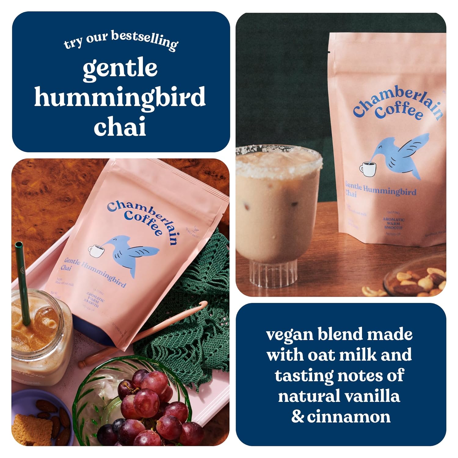 Chamberlain Coffee Gentle Hummingbird Chai Mix - Warm, Aromatic Vegan Chai With Oat Milk, Vanilla & Spices - Hot Or Iced Instant Chai Latte - 10Oz - 10 Servings