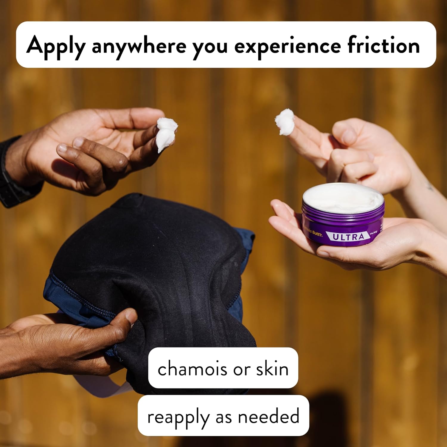 This versatile balm is made for the most demanding environments and is ideal for long rides and hot, wet conditions. ULTRA's non-water-soluble formula is thicker than our anti-chafe creams for advanced protection and longer-lasting comfort,Apply to chamois pad or directly to skin to help protect and prevent chafing,Solid balm, softens to touch; reapply as needed; rub excess into skin,Advanced protection chamois balm is a non-water-based formula, one application lasts all day,Formulated for ultra-endurance and hot, wet conditions; made with natural ingredients,Reusable and recyclable aluminum tin; Made in the USA