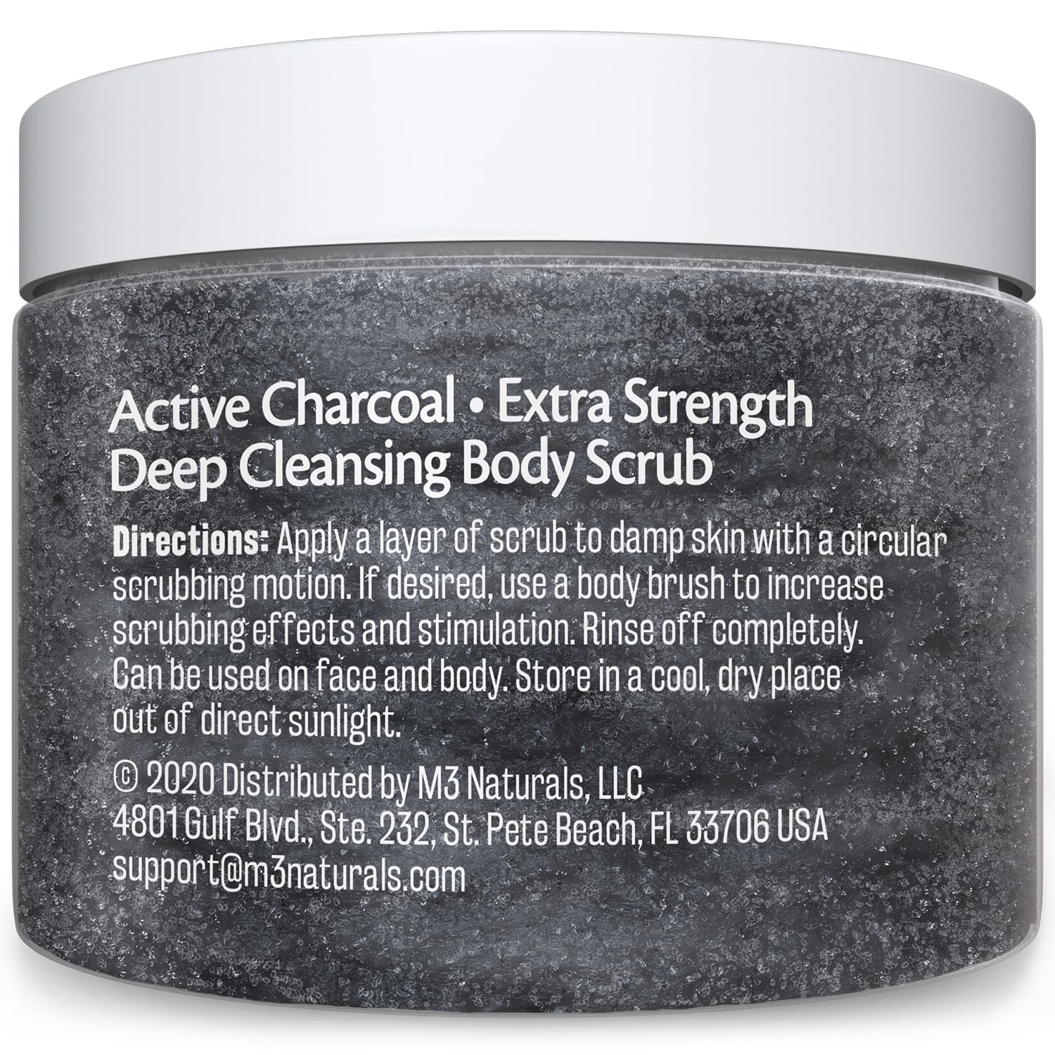 M3 Naturals Activated Charcoal Facial Polishes Scrub provides a quality exfoliating experience as a body scrub, face scrub, hand scrub, or foot scrub! Working together, our natural charcoal granules and coconut oil will help restore your natural skin glow and wash away those unwanted toxins and dead skin cells!Infused with Collagen and Stem Cell our moisturizing charcoal scrub will take your skin care routine to the next level by boosting natural collagen production and increasing skin cell longevity. A truly powerful combination that delivers unmatched anti-aging skincare results!Help Reduce Skin Blemishes - Whether you choose to use our natural charcoal as a face scrub or body exfoliator our unique ingredients will help to reduce the appearance of acne, cellulite, wrinkles, fine lines, dark spots, stretch marks, varicose veins, spider veins and so much more!Spa Quality Results for Men and Women: Cleanse your skin naturally and scrub away those unwanted toxins from your pores while balancing systemic pH. A top-quality pore minimizer that cleans and restores your natural skin glow and continues working to maintain its silky-smooth results!