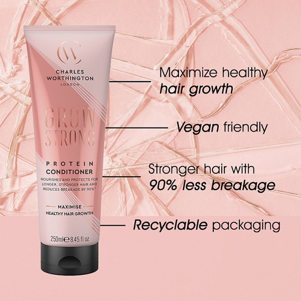 Our Charles Worthington Grow Strong Protein Conditioner nourishes and protects your hair for longer, stronger hair, while reducing breakage by 90%