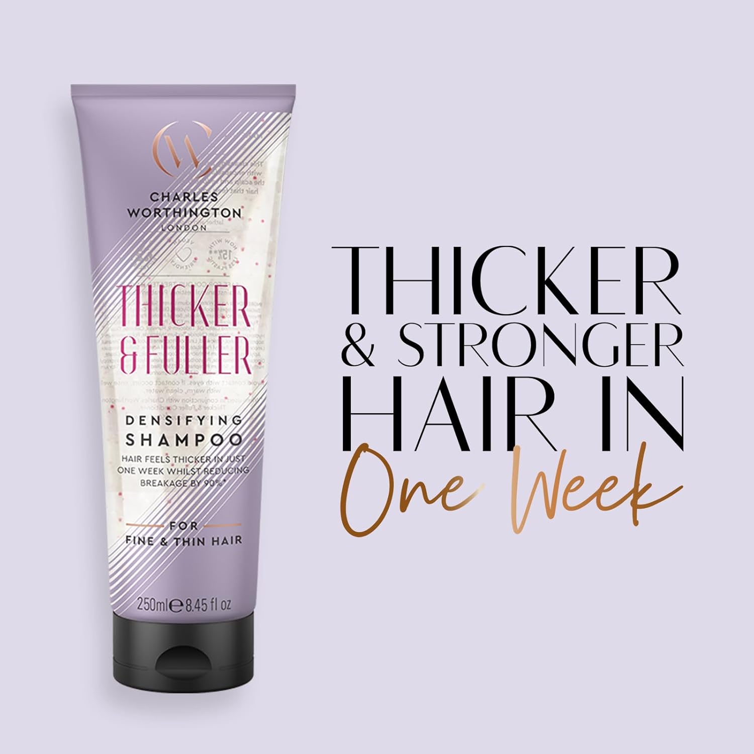 Charles Worthington Thicker And Fuller Densifying Shampoo, Hair Thickening Shampoo For Fine Hair, Purple, 250 Ml (Pack Of 2)