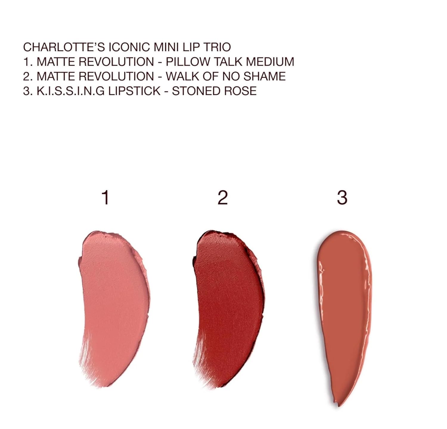Charlotte Tilbury Iconic Mini Lip Trio - Stoned Rose, Pillow Talk 2, Walk Of No Shame