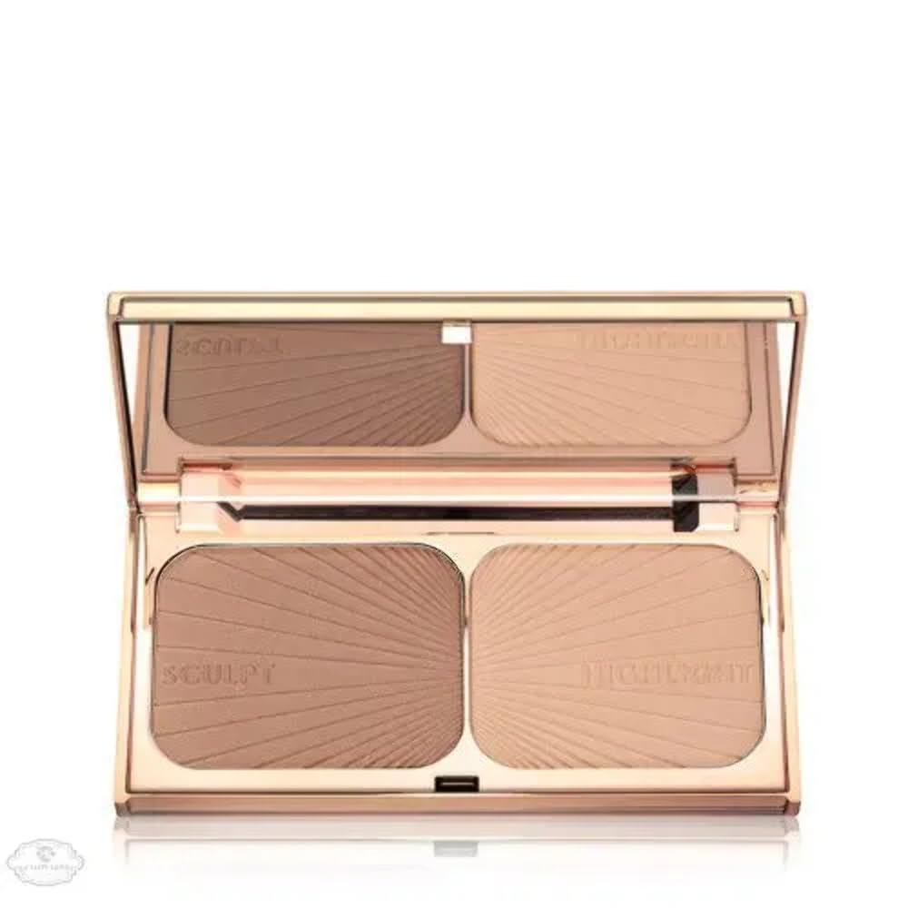 PORTABLE GLAMOUR: Charlotte Tilbury's Mini Filmstar Bronze & Glow Contour Duo fits in your bag for glam on-the-go, letting you contour and highlight effortlessly