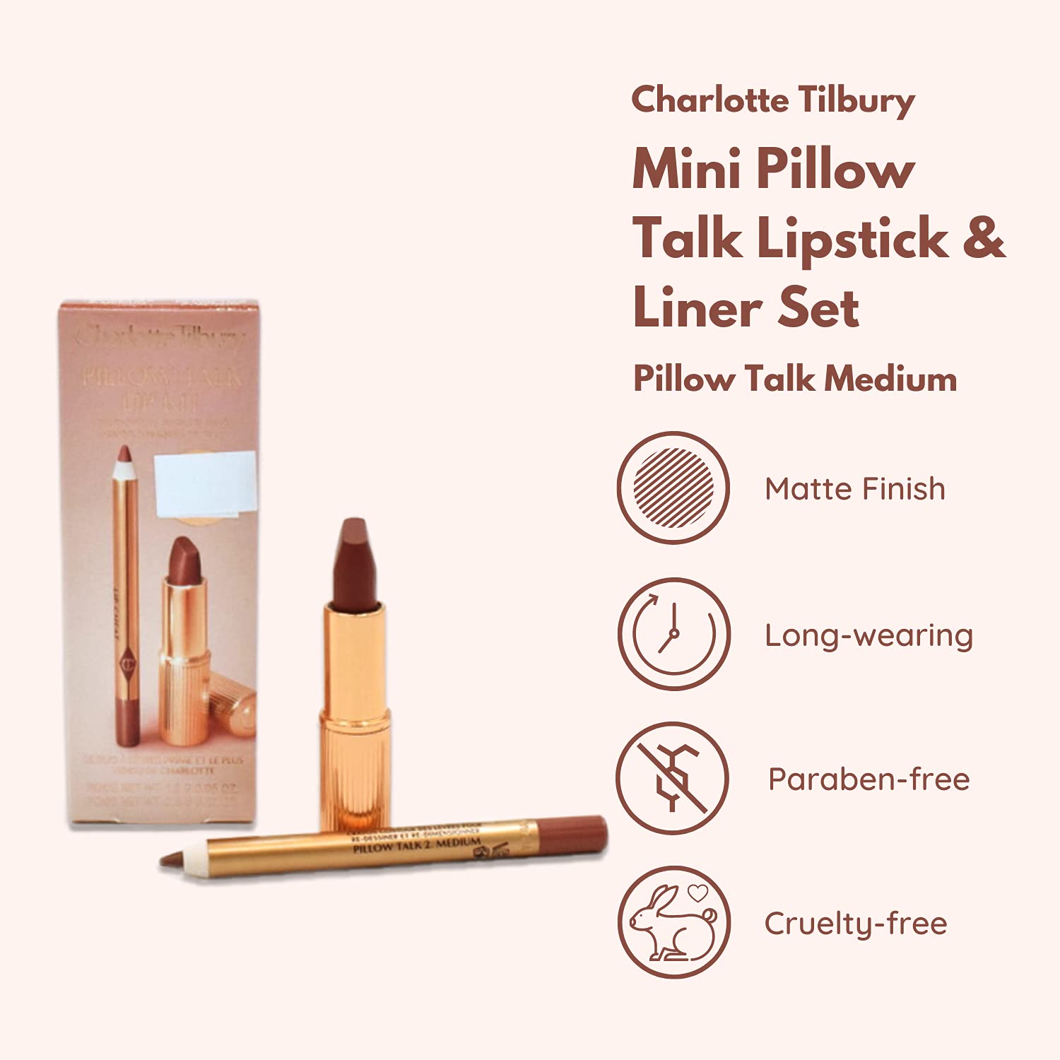 Charlotte Tilbury Pillow Talk Duo: Pillow Talk Medium - Travel Size Lip Duo Set, Lip Cheat Lip Liner And Matte Revolution Lipstick, Long Lasting