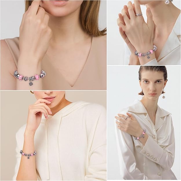 The Charming Pink Hearts Bracelet is a delicate and romantic accessory crafted to add a touch of elegance to any outfit. Featuring silver-plated charms and soft pink heart beads, this bracelet is strung on a stylish adjustable snake chain for a perfect fit and comfortable wear. The combination of shimmering metal and feminine charm beads creates a timeless look suitable for both casual and formal occasions. Whether worn alone or layered with other pieces, it’s a beautiful expression of love and style—making it an ideal gift for birthdays, anniversaries, Valentine's Day, or any special moment.