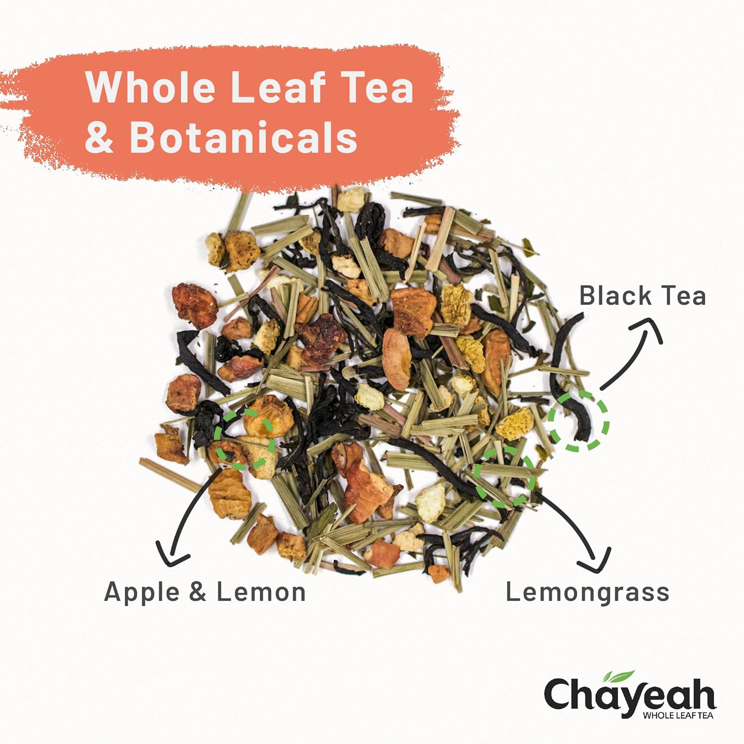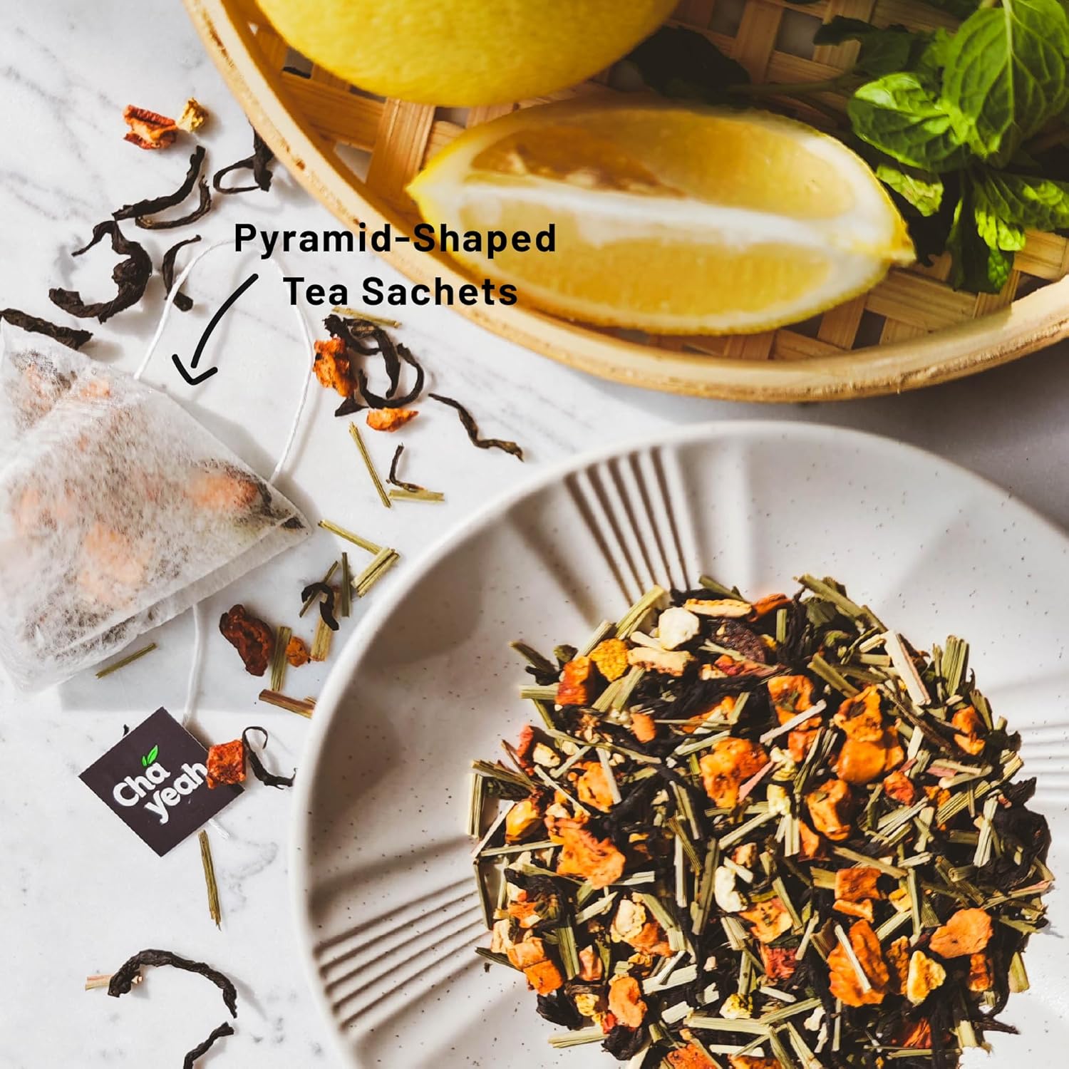 Chayeah, Mint Lemongrass, Black Tea Blended With Lemongrass, Peppermint & Apple, Caffeinated (16 Pyramid Tea Sachets)