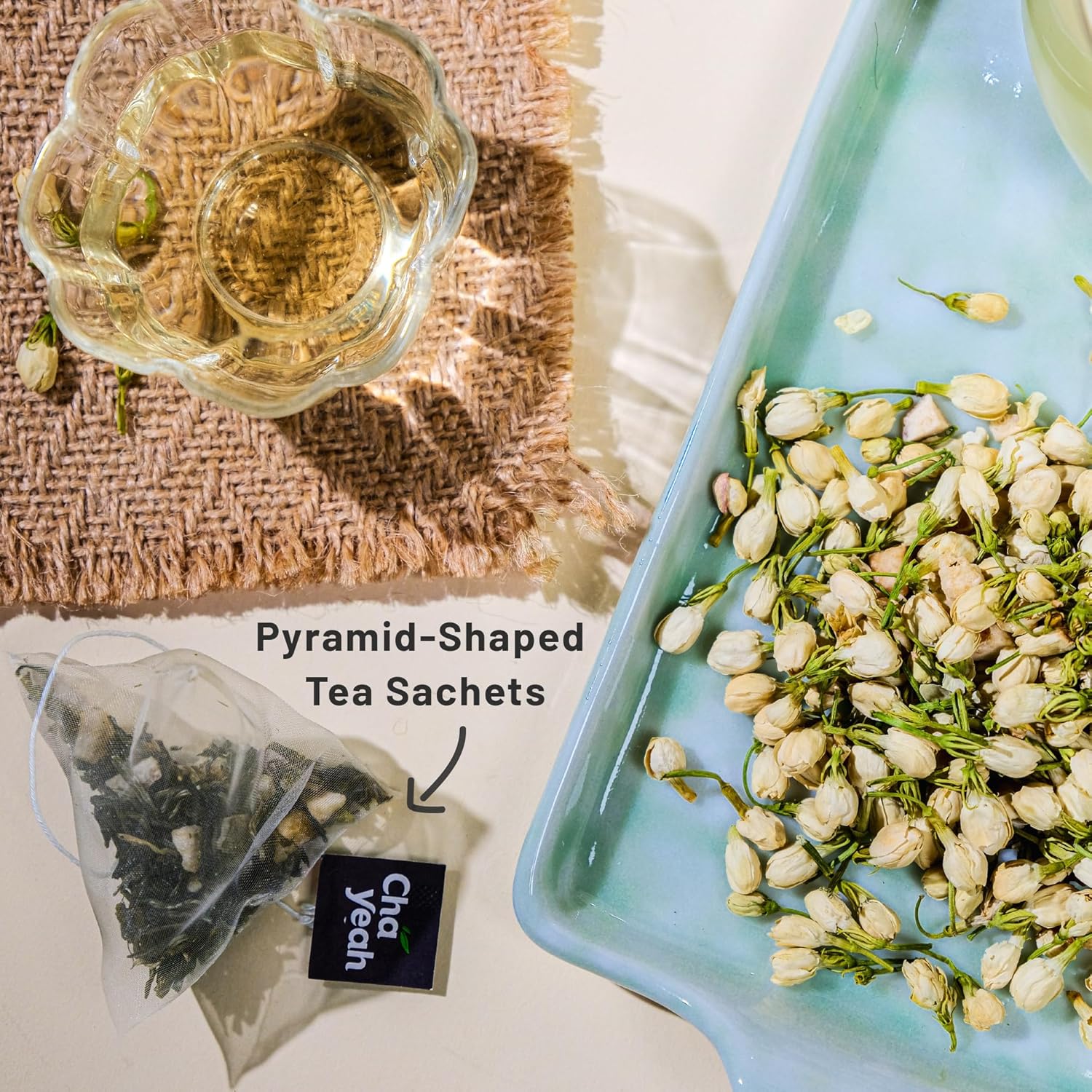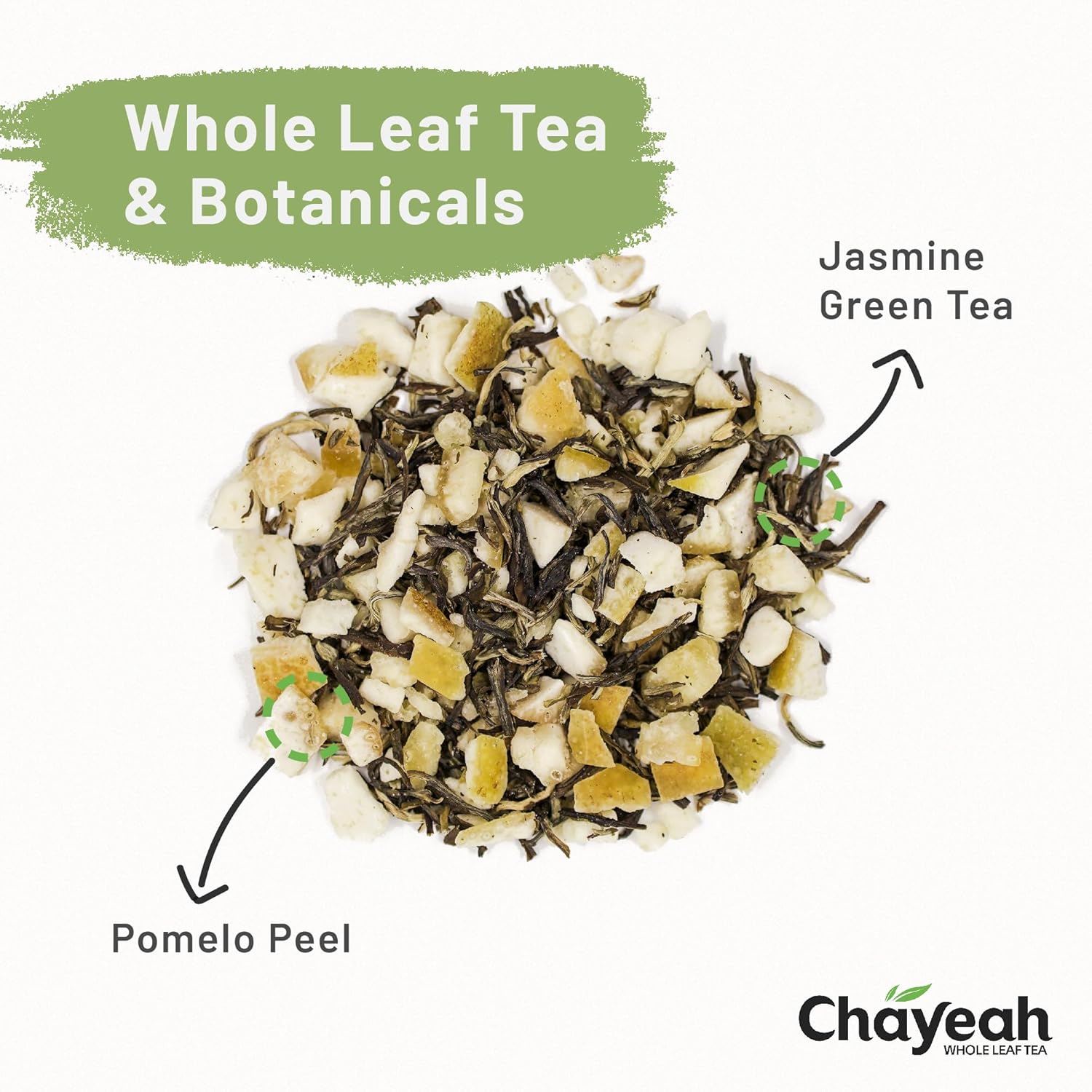 Chayeah, Pomelo Jasmine, Scented Jasmine Green Tea With Pomelo Peel, Whole Leaf Tea Bag, Caffeinated (16 Pyramid Tea Sachets)