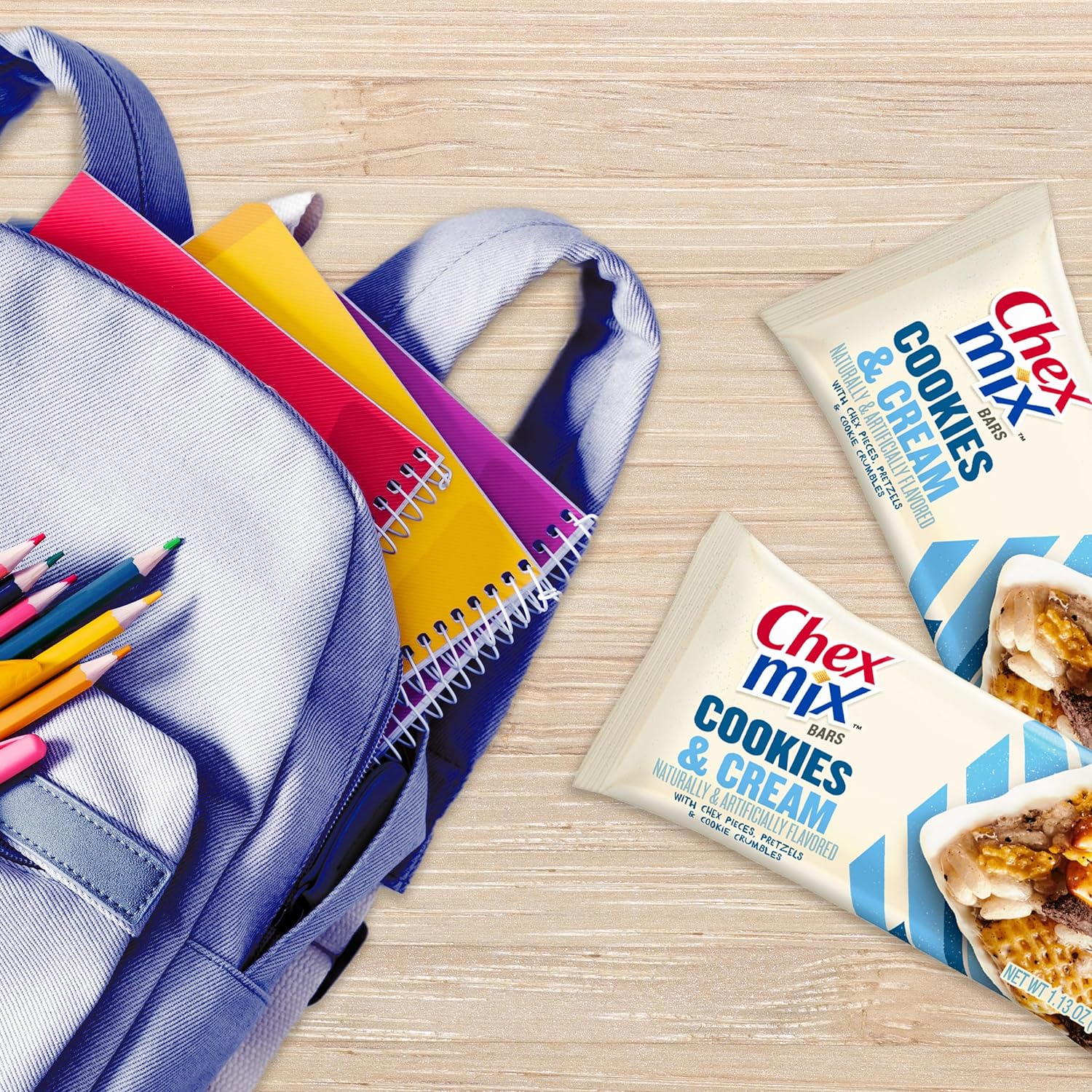 Chex Mix Cookies & Cream Treat Bars are a delicious combination of chex pieces, pretzels and cookie crumblesCHEX MIX BARS: Introducing Cookies & Cream Bars, bring the fun anywhere you goON-THE-GO SNACK: A snack that is great for on-the-go or an after school snackTREAT BARS: Delicious Cookies & Cream Chex Mix, now in a convenient, chewy barNO MESS: A great way to enjoy your favorite Chex Mix