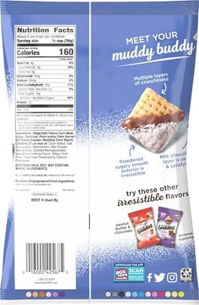 Meet Your Muddy Buddy. I've got multiple layers of crunchiness. My powdered sugary smooth exterior is irresistible. I'm all about sweet & substance. Chex Mix Muddy Buddies feature crispy corn chex pieces in a chocolatey cookies and cream coating with a delightful powdery smooth finish. Sweet treats for anytime. A portable snack bag for a sweet and crunchy treat, for lunch time, break time and anything in between. This irresistibly delicious snack makes a perfect item for your pantry and lunchbox and addition to your grocery routine. The wonderful blend of tasty corn Chex dusted with a sweet powdery coating. Contains one 10.5 oz snack bagCHEX MIX: Muddy Buddies Cookies and Cream Chex Mix features crispy corn Chex pieces in a chocolatey cookies and cream coating topped with a sweet powdery finishGREAT TASTE: Muddy Buddies are the irresistible combination of sweet, powdery smooth and crunchy Crispy corn Chex pieces topped with a Cookies and Cream coating; Made with natural and artificially flavored ingredientsSATISFYING SNACK: Portable snack bag for a sweet and crunchy treat, for lunch time, break time and anything in betweenENDLESS OPTIONS: Pick your flavor mix from Cookies and Cream, Peanut Butter Chocolate, Brownie Supreme and more; A perfect item for your pantry