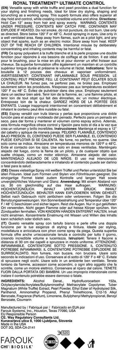 Chi Royal Treatment Ultimate Control, Hair Spray, 284G, White