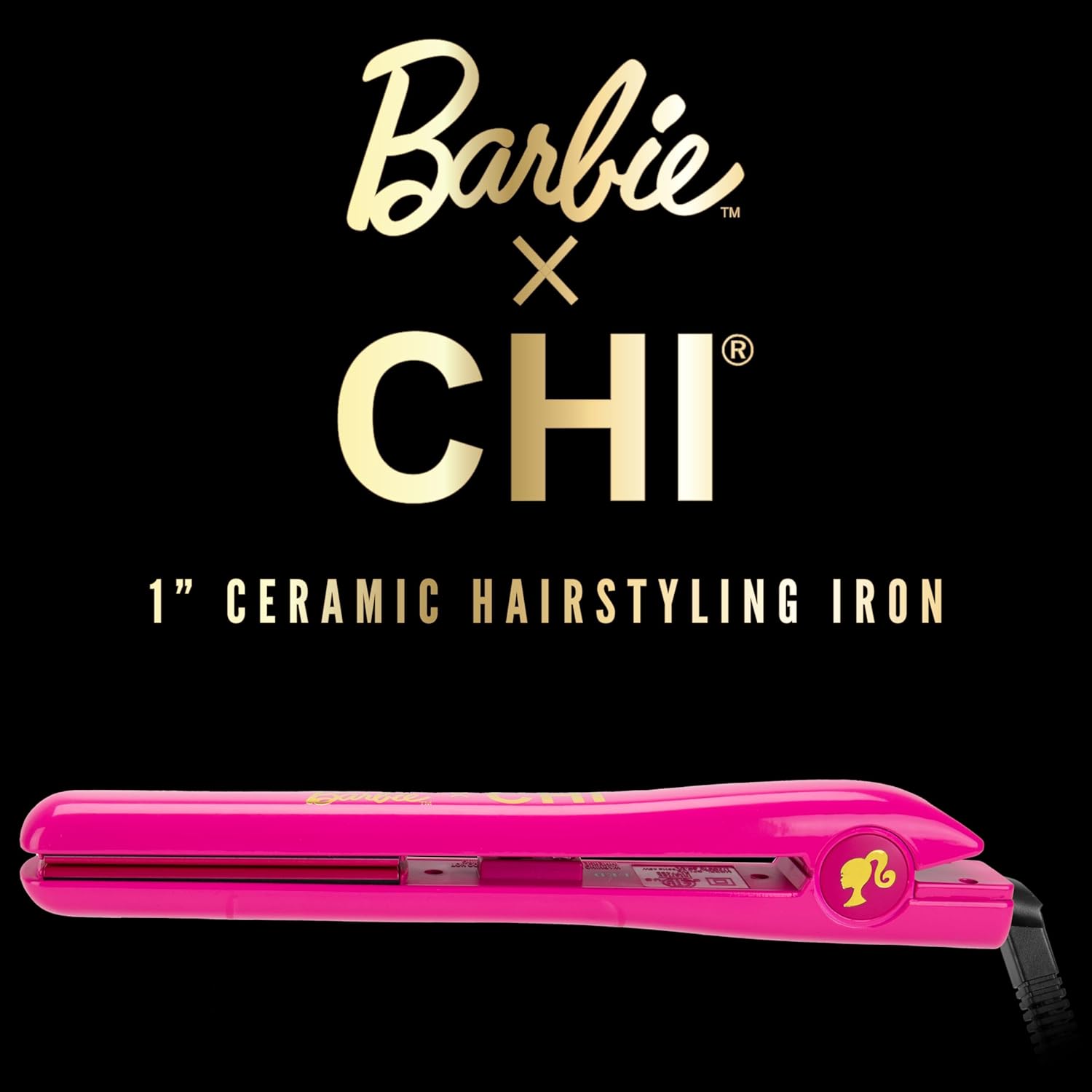 Celebrate Barbie's 65th birthday by recreating the iconic hairstyles that have inspired us for decades. With the Barbie x CHI 1 Inch Hairstyling Iron, unleash your inner Barbie. This hairstyling iron will transform your locks, delivering shiny, smooth, salon-quality results without subjecting your hair to high heat damage. Suitable for all hair types, this versatile tool empowers you to create any style you choose. Features & Benefits: - 1 inch pink coated ceramic floating plates, for a single pass styling - Ceramic heater with advanced technology - Max temperature of 392 F/200 C for optimal styling - 6.5ft (3.35m) professional swivel cord Founded by Farouk Shami, a hairdresser allergic to ammonia who sought to create the first ammonia-free hair color & has remained committed to crafting the finest ethical haircare. CHI products are cruelty-free, paraben-free, & sulfate-free,SMOOTHING FLAT IRON: This flat iron will transform your locks, delivering smooth, salon-quality results without subjecting your hair to high heat damage. Suitable for all hair types, this versatile tool empowers you to create any style you choose,FRIZZ-FREE RESULTS: This ceramic technology ensures even heat distribution and delivers consistent results for all hair sections, promoting shinier, healthier, and smoother hair, preventing hair damage,CHI FLAT IRONS: CHI Flat Irons have a versatile ergonomic design and use advanced ceramic technology. Our dynamic professional flat irons offer a sleek design, and outstanding performance, creating shiny and frizz-free hair instantly,HOW TO USE: Divide hair into one to two inch sections. Use fluid motions to run the iron over the length of your hair one section at a time,CHI: Founded by Farouk Shami, a hairdresser allergic to ammonia who sought to create the first ammonia-free hair color & has remained committed to crafting the finest ethical haircare. CHI products are cruelty-free, paraben-free, & sulfate-free