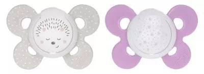 Chicco Physio Comfort Night 2 Silicone Soothers 16-36 Months Are Two Soothers With Physio-Orthodontic Teats Which Favors The Good Development Of Baby Mouth. They Are In Extra-Soft Silicone Which Reminds The Softness Of The Breast . They Are Visible In The Dark Thanks To Their Phosphorescent Decor. They Are Stored And Transported In Their Sterilizable Box. These Pacifiers Are Not Toys. Compliant With The Regulations In Force. 0% Bpa