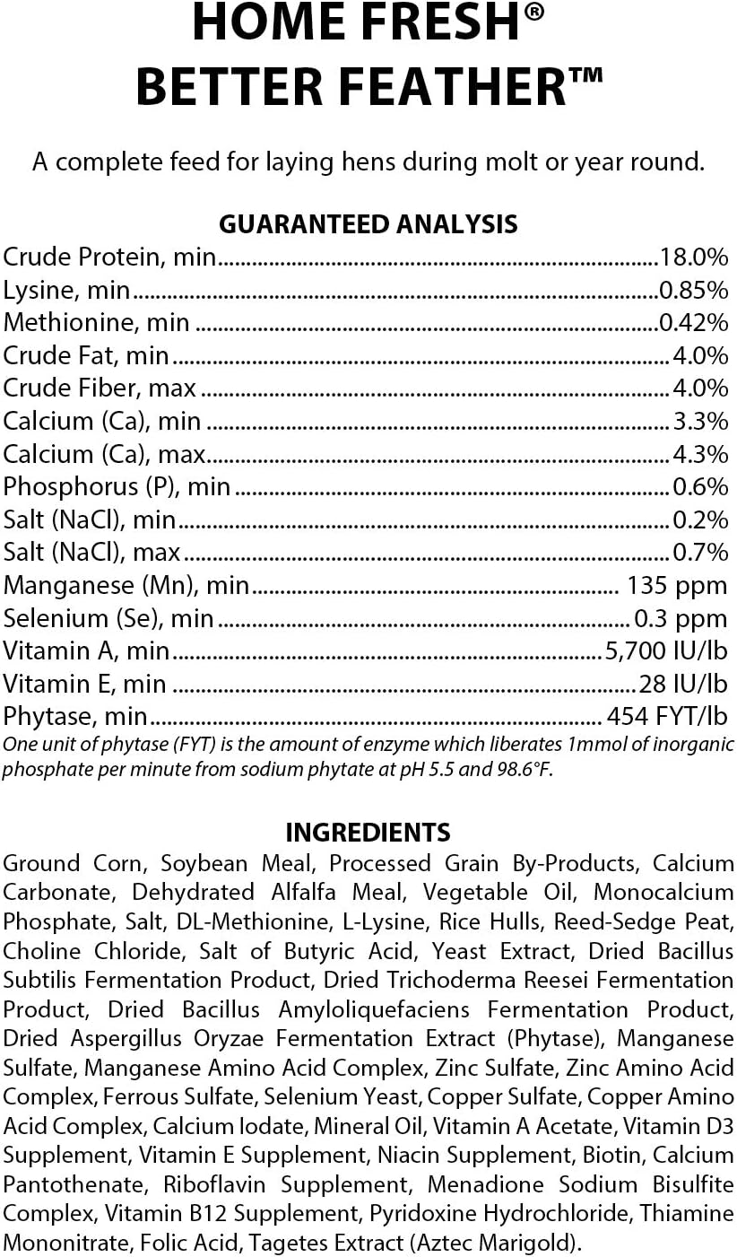 Complete And Balanced Nutrition - Formulated Specifically To Support Feather Growth And Egg Production In Layers As They Go Through A Molt. Optimum Levels And Ratios Of Nutrients Help Support And Maintain Overall Health. With Every Feeding At Any Age, You’Ll Know That You’Re Giving Your Flock The Wholesome, Quality Nutrition They Need To Be Healthy, Active, And Productive. That’S A Promise, From Our Family To Yours