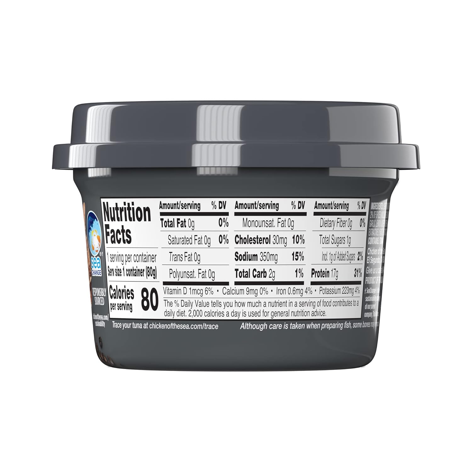 DELICIOUS FLAVOR: Tender chunks of premium, wild caught tuna in water, infused with cracked black pepper and lemon10HIGHLY NUTRITIOUS: Every cup contains 17 grams of lean protein, 80 calories, and heart-healthy omega-3s and 2g of carbsâperfect for keto, paleo, and Mediterranean diets10100% DELICIOUS INGREDIENTS: Our premium Infusions Tuna contains only delicious ingredients that can be enjoyed as the perfect snack or along with lunch10RESPONSIBLY SOURCED TUNA: We're proud to offer only responsibly sourced skipjack tuna10READY-TO-EAT CUP: Recyclable cup and tuck-away fork require no can opener or draining, so you can just peel it open and go. (6) 2.8oz cups10DELICIOUS FLAVOR: Tender chunks of premium, wild caught tuna in water, infused with cracked black pepper and lemon. HIGHLY NUTRITIOUS: Every cup contains 17 grams of lean protein, 80 calories, and heart-healthy omega-3s and 2g of carbsâperfect for keto, paleo, and Mediterranean diets. 100% DELICIOUS INGREDIENTS: Our premium Infusions Tuna contains only delicious ingredients that can be enjoyed as the perfect snack or along with lunch. RESPONSIBLY SOURCED TUNA: We're proud to offer only responsibly sourced skipjack tuna. READY-TO-EAT CUP: Recyclable cup and tuck-away fork require no can opener or draining, so you can just peel it open and go. (6) 2.8oz cups