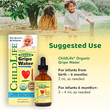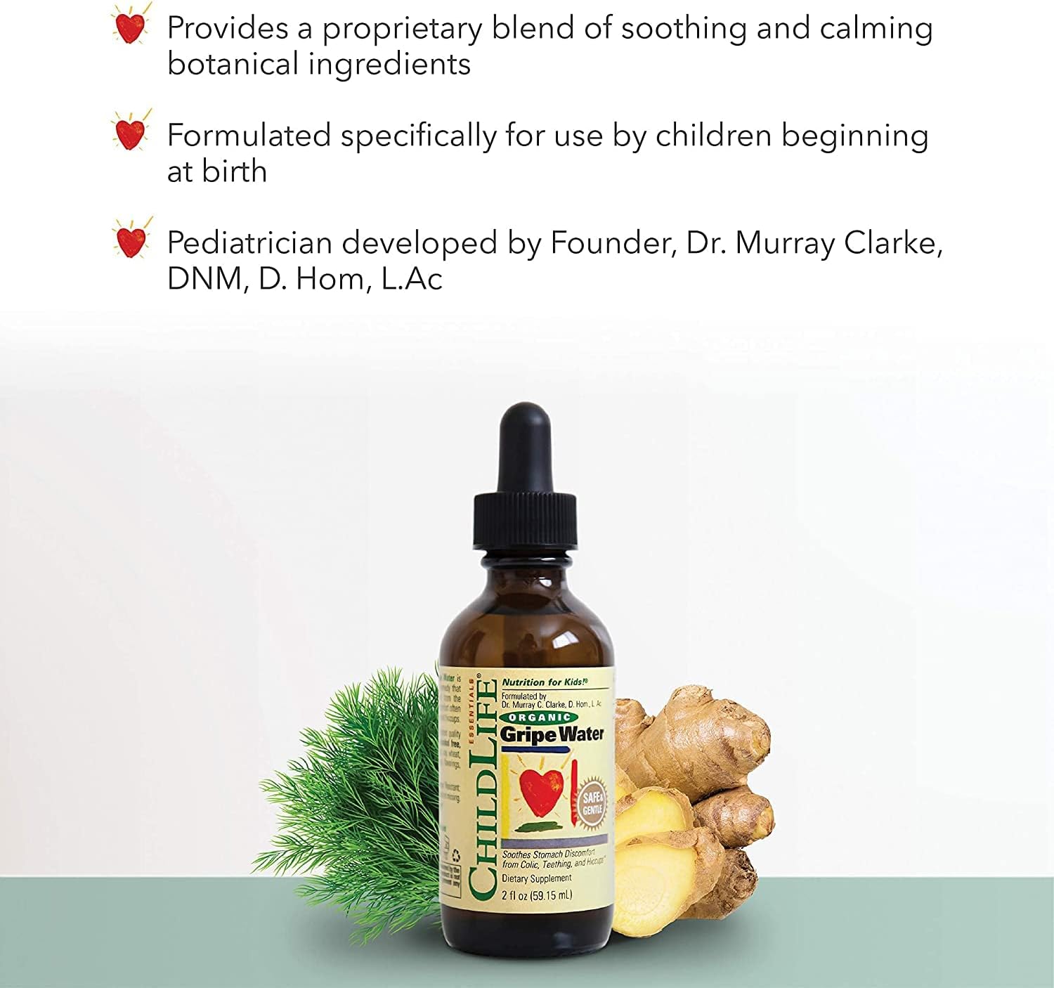 CHILDLIFE ESSENTIALS Organic Gripe Water for Babies & Newborns - Soothes Occasional Stomach Discomfort Associated with Colic, Teething, & Hiccups in Children, Gluten-Free - 2 Fl Oz (Pack of 2)