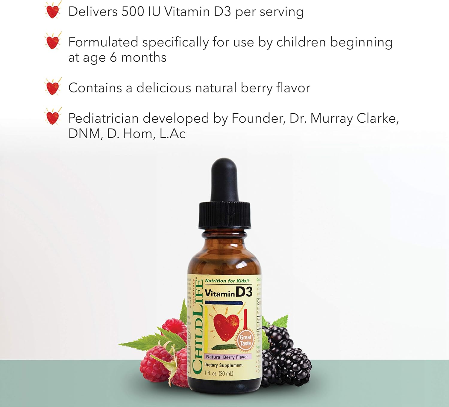 Childlife Essentials Vitamin D3, Natural Berry Flavor - Gluten Free, Alcohol Free, Casein Free - 1 Fl. Oz (Pack Of 3)