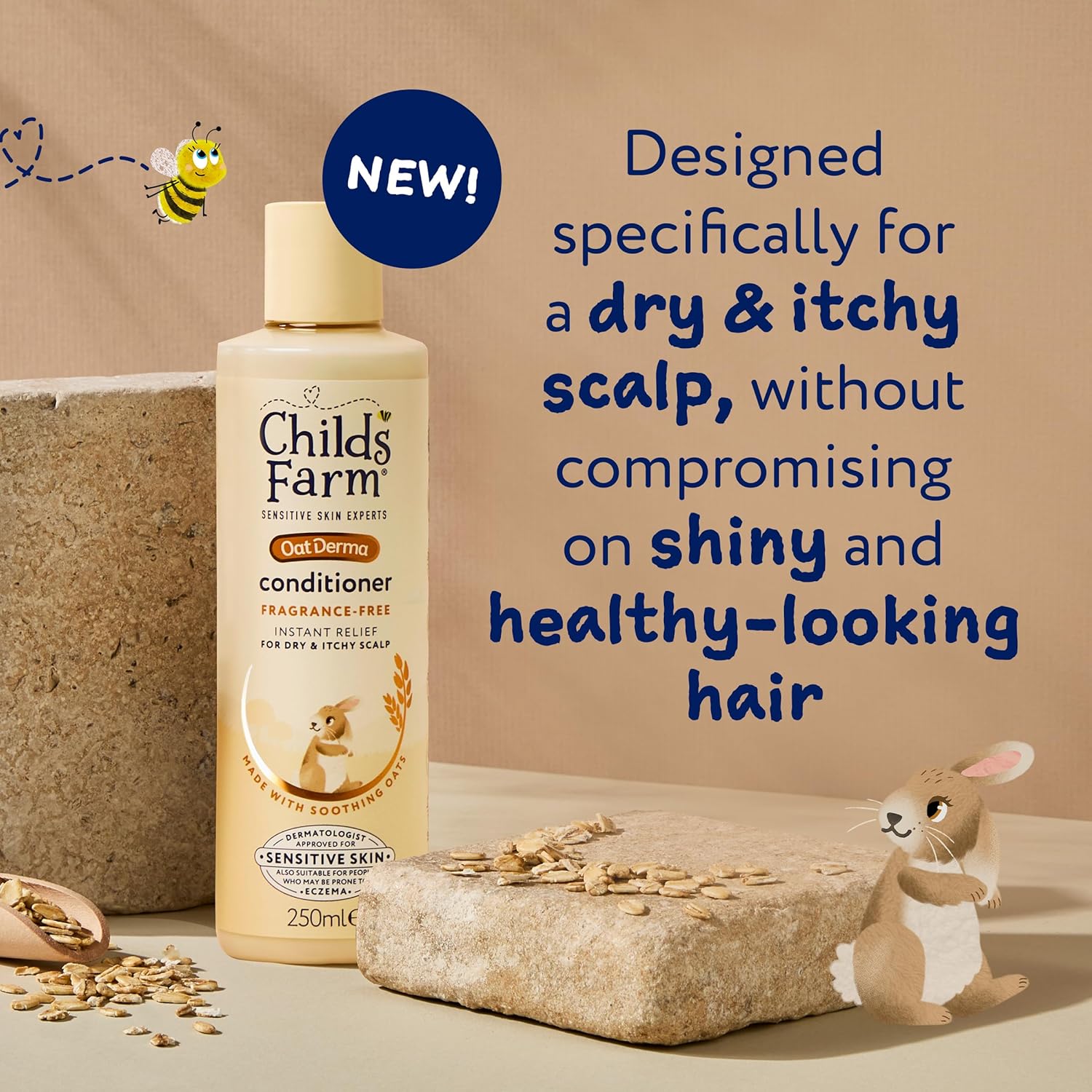 Childs Farm Oatderma Hair Conditioner, Fragrance And Tear Free, Soothing For Sensitive Skin And Scalp, Baby, Kids, 250Ml