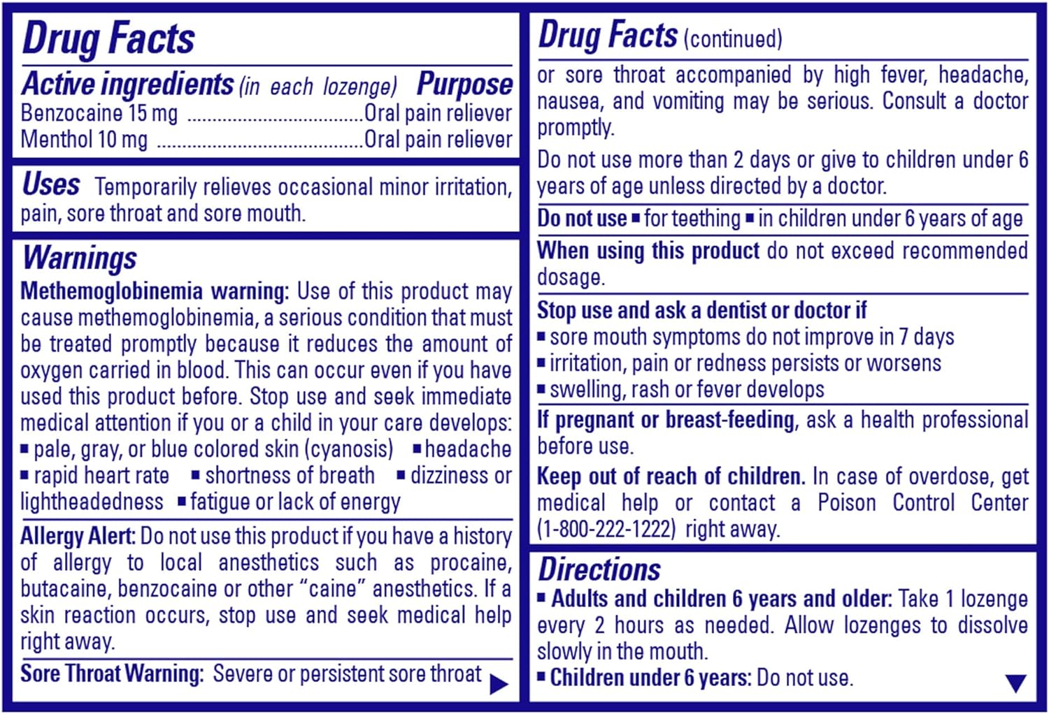 Chloraseptic Max Strength Sore Throat Lozenges to provide throat and mouth pain reliefThroat lozenges have a soothing liquid center that relieves throat pain and cools nasal passagesFast-acting lozenges provide maximum strength pain relief for your sore throat without a prescriptionChloraseptic Wild Berries is safe for the whole family and children ages 6 and upTrusted for 50 years and the doctor recommend brand* * IQVIA Survey 2/08/22Chloraseptic is the Number One Sore Throat Relief Brand (1). With Chloraseptic Sore Throat Lozenges and Sprays, you get fast acting relief in a variety of flavors from a brand that has been relieving sore throats for over 55 years. Our fast-acting sprays and soothing lozenges relieve pain on contact and coat your throat for additional comfort. For on-the-go relief, try Chloraseptic Sore Throat Lozenges! This fast-acting sore throat remedy will be handy to keep in the medicine cabinet for fast, easy access at home or take them on-the-go for throat and mouth pain relief anytime or anywhere. Lozenges come in flavors like Wild Berries, Citrus and Warming Honey Lemon and in Sugar Free Wild Cherry and are for use with adults and children 6 years of age and over. Chloraseptic Sore Throat Sprays are aspirin free and sugar free and are for use with adults and children 3 years of age and over. (1) IRI Data Total Units Sold Ending 11/27/22, Multi-Outlet + Convenience