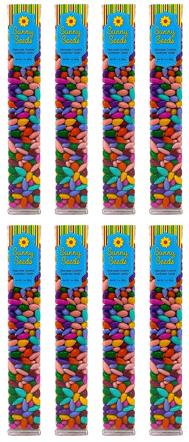Chocolate Covered Sunflower Seeds Multicolored Candy Coated Treats - Rainbow Party Favors - Sweet and Crunchy Topping - Pack of 8