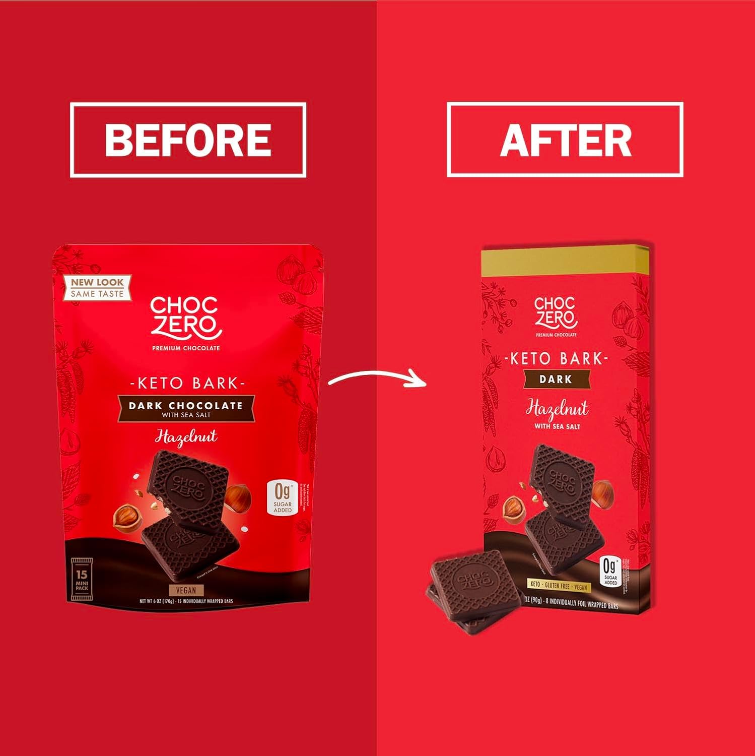 Choczero Keto Bark, Dark Chocolate Hazelnut With Sea Salt, Sugar Free, Low Carb, No Sugar Alcohols, No Artificial Sweeteners, All Natural, Non-Gmo, 3.2 Ounce (Pack Of 4)