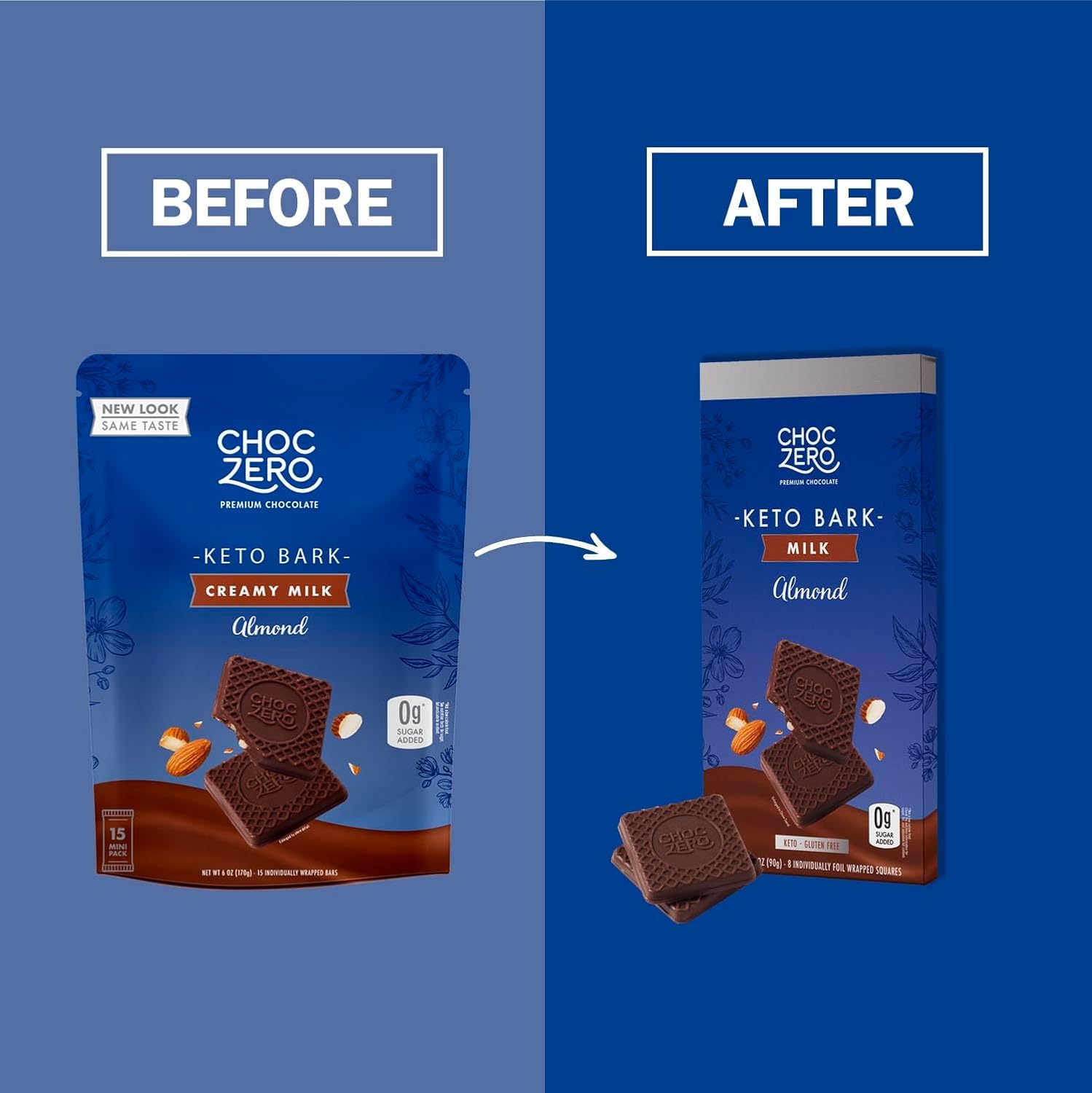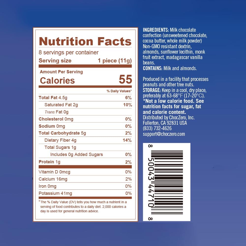 Choczero Keto Bark, Milk Chocolate Almond Candy, No Added Sugar, Low Carb, No Sugar Alcohols, No Artificial Sweeteners, 3.2 Ounce (Pack Of 4)