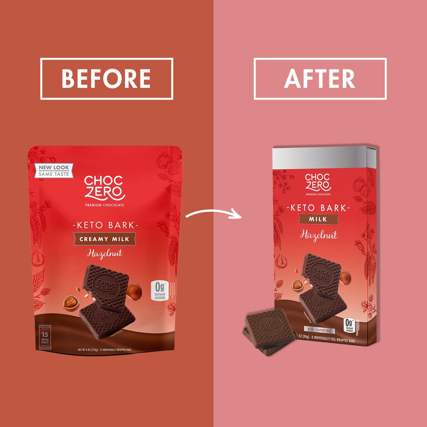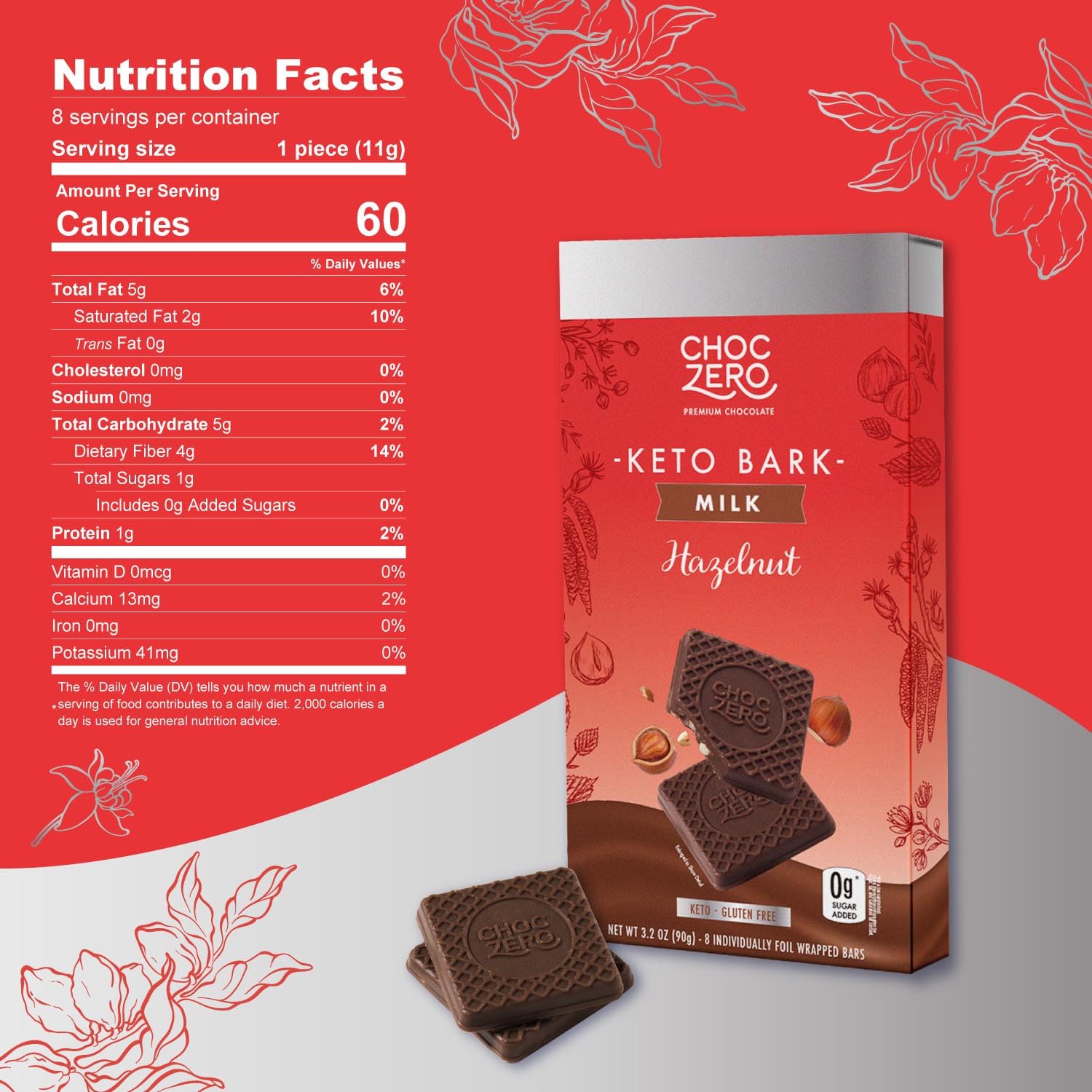 Choczero Keto Bark, Milk Chocolate Hazelnut Candy Bar, No Added Sugar, Low Carb, No Sugar Alcohols, No Artificial Sweeteners, 3.2 Ounce (Pack Of 4)