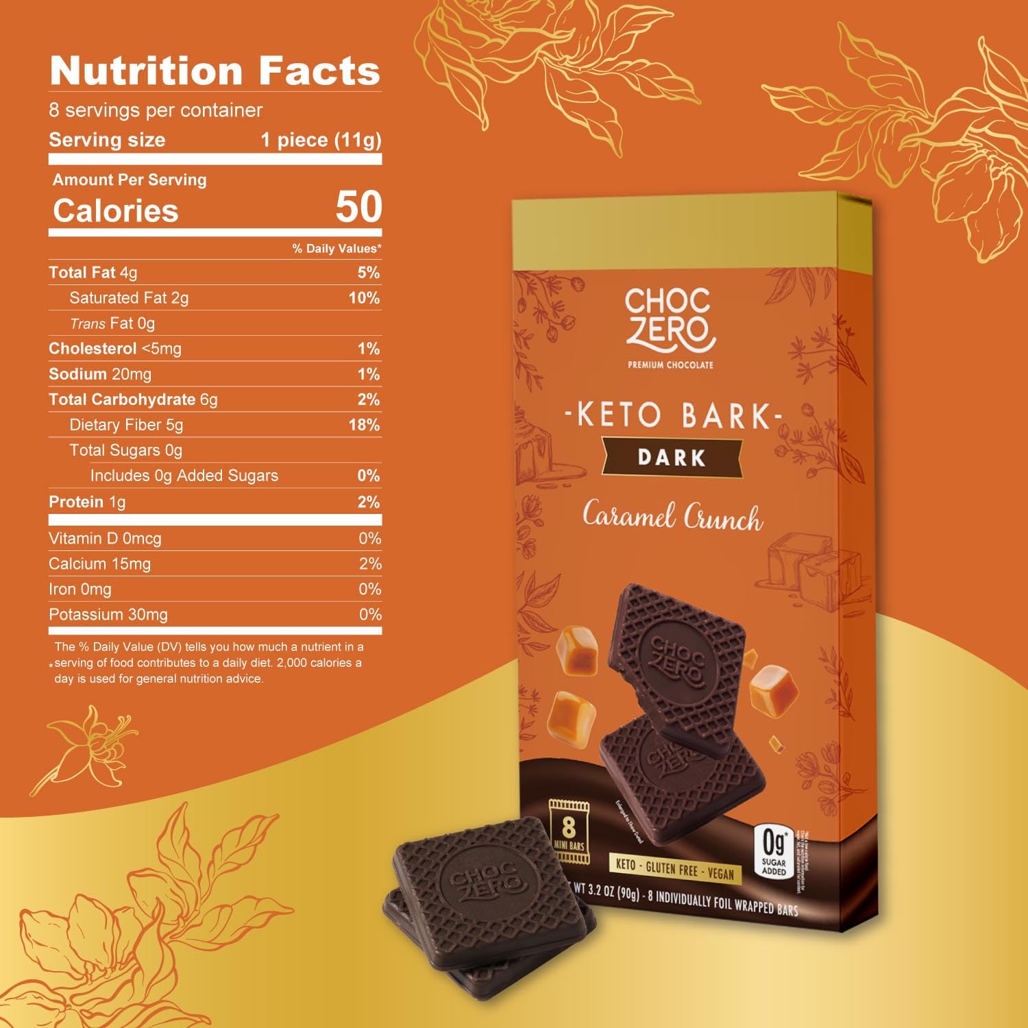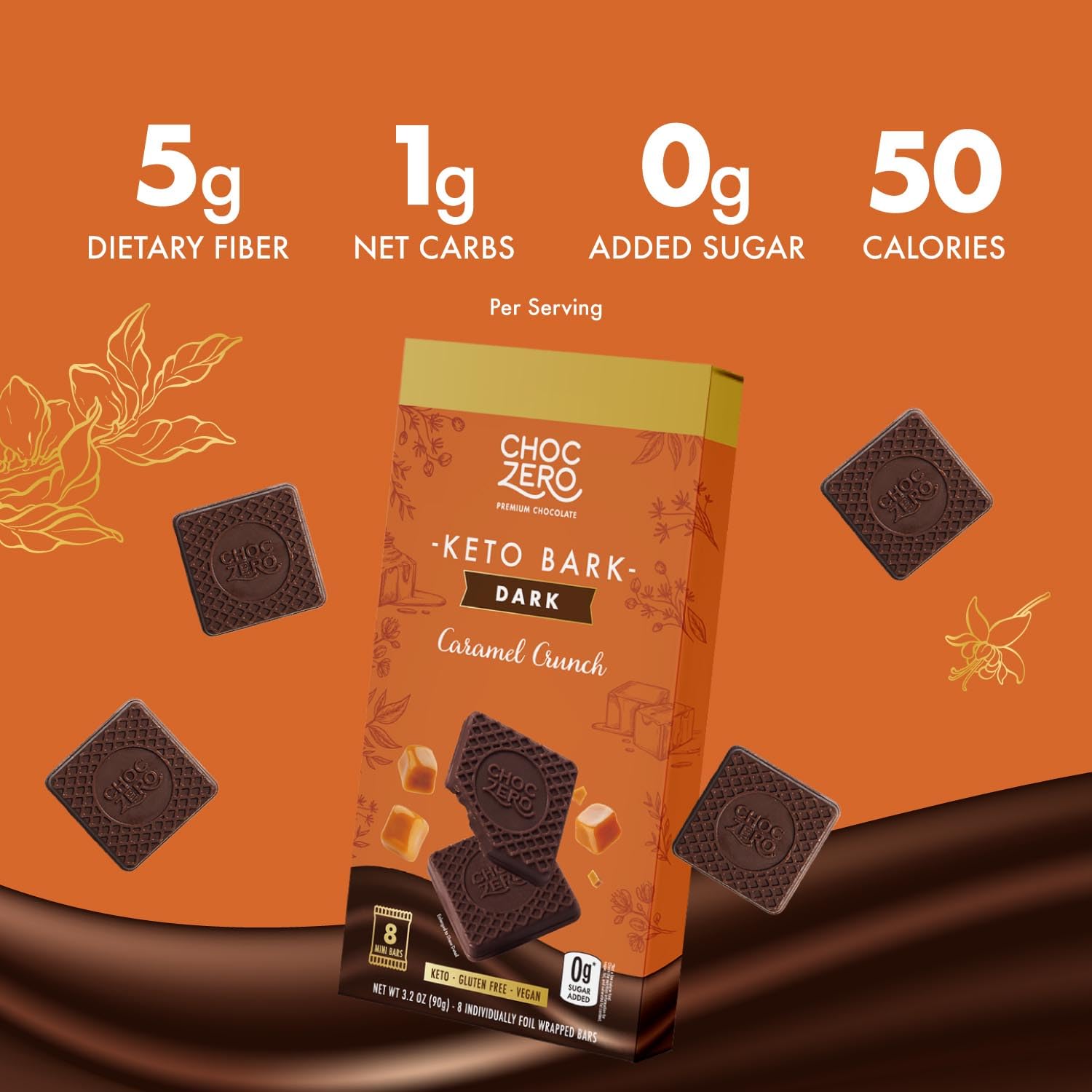 Choczero Vegan Caramel Crunch Keto Bark, Dark Chocolate Candy Bar With Caramel, Dairy Free, Sugar Free, Gluten Free, 3.2 Ounce (Pack Of 4)