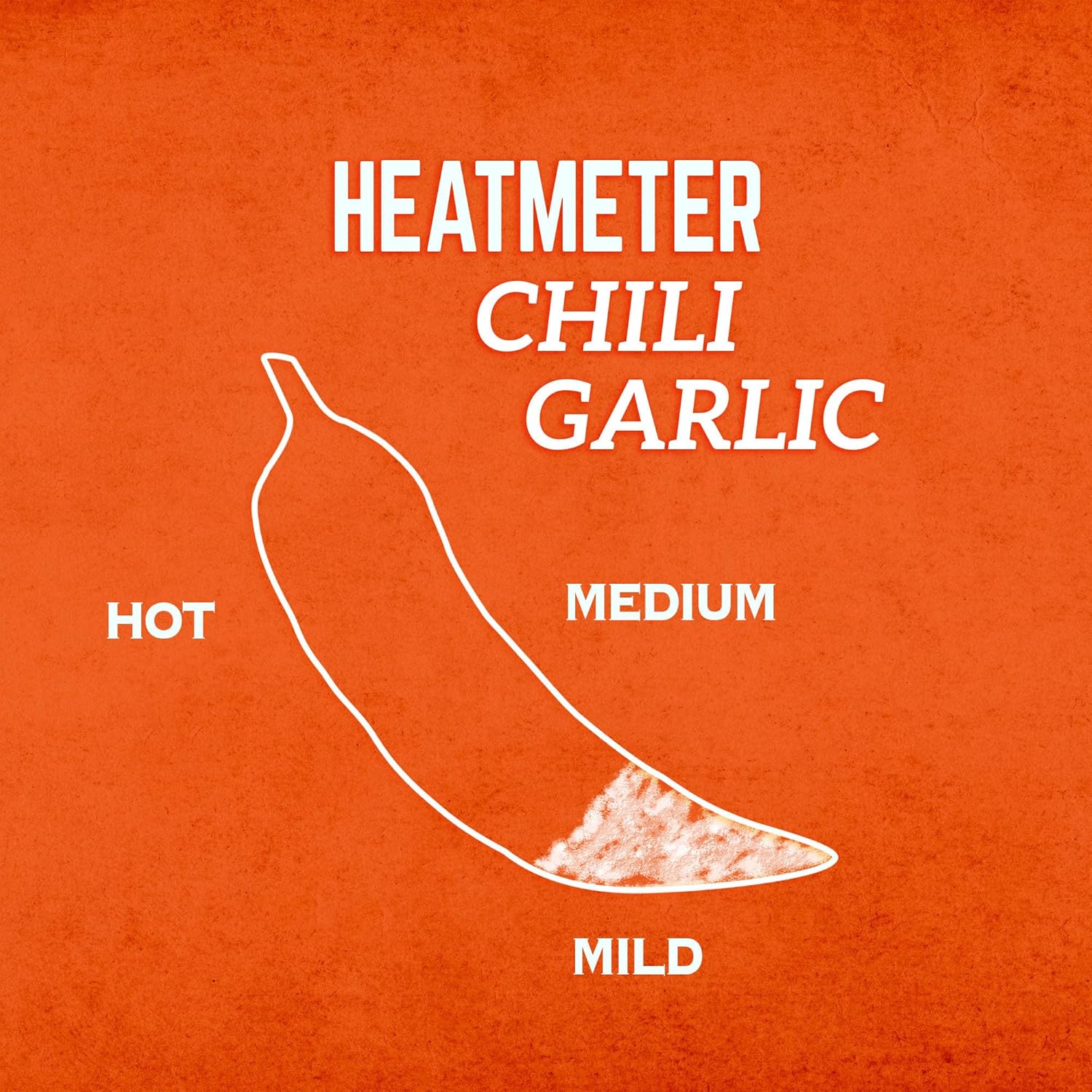 Chili Garlic Hot Sauce is a blend of garlic, arbol and piquin peppers & signature spices
