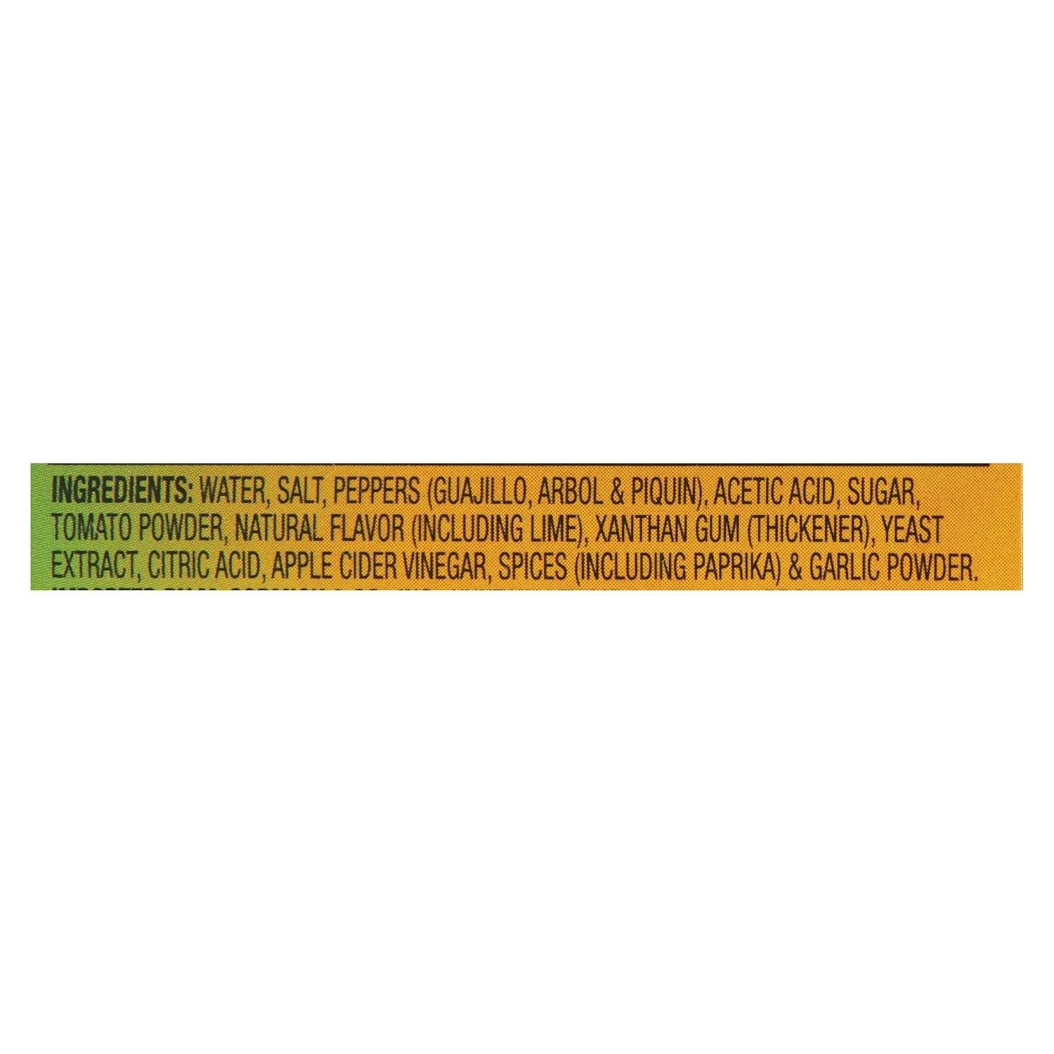 About this item Chili Lime Hot Sauce blends lime with arbol & piquin peppers and our signature spices Refreshing burst of citrus flavor with mild heat and a hint of sweet Add to seafood dishes, including fish tacos and grilled shrimp or salmon For salsa, guacamole, taco sauce, scrambled eggs and even fruit Product of Mexico › See more product details,Chili Lime Hot Sauce blends lime with arbol & piquin peppers and our signature spices,Refreshing burst of citrus flavor with mild heat and a hint of sweet,Add to seafood dishes, including fish tacos and grilled shrimp or salmon,For salsa, guacamole, taco sauce, scrambled eggs and even fruit,Product of Mexico