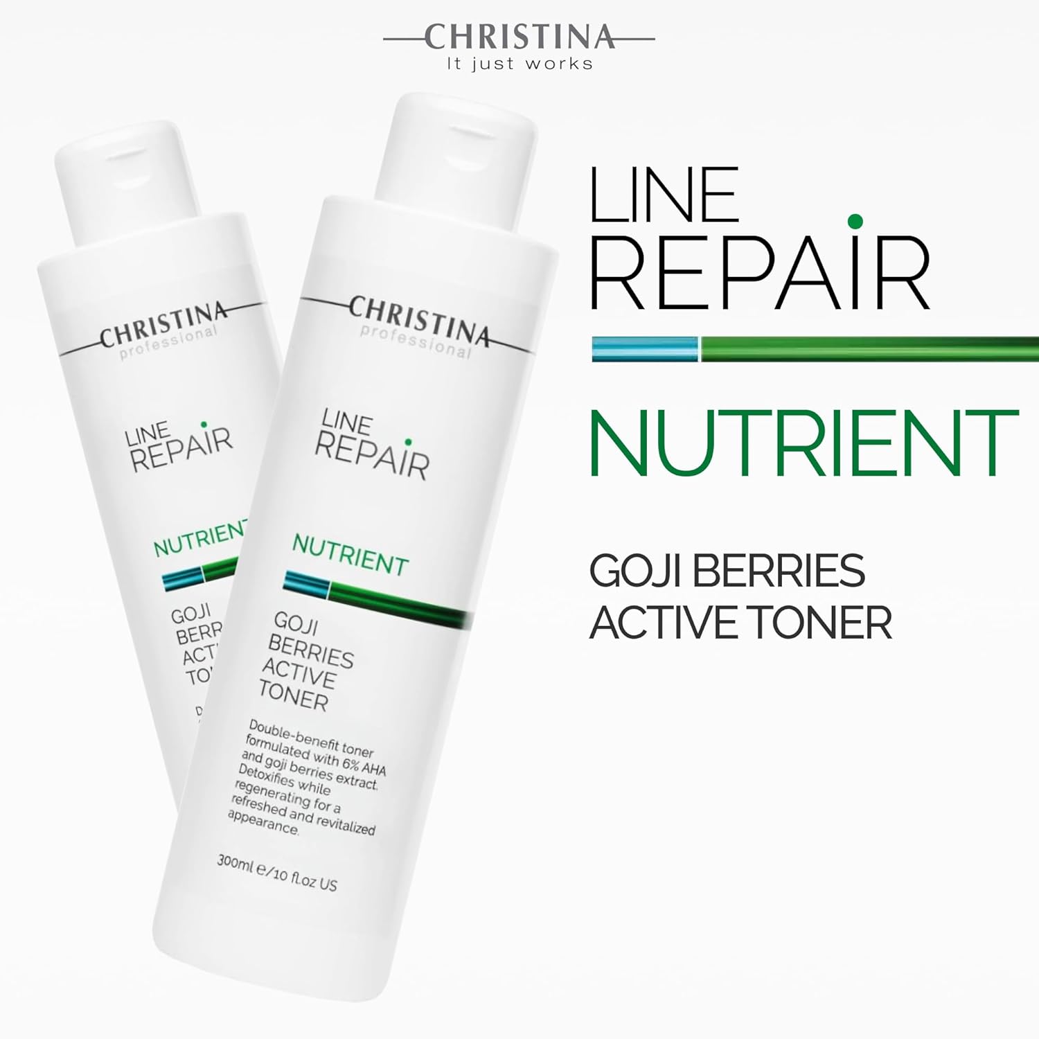 Christina Line Repair Nutrient Goji Berries Glycolic Acid Toner For Face | Regeneration, Skin Alignment Facial Toner | Suitable For Acne, Black Spots 300Ml