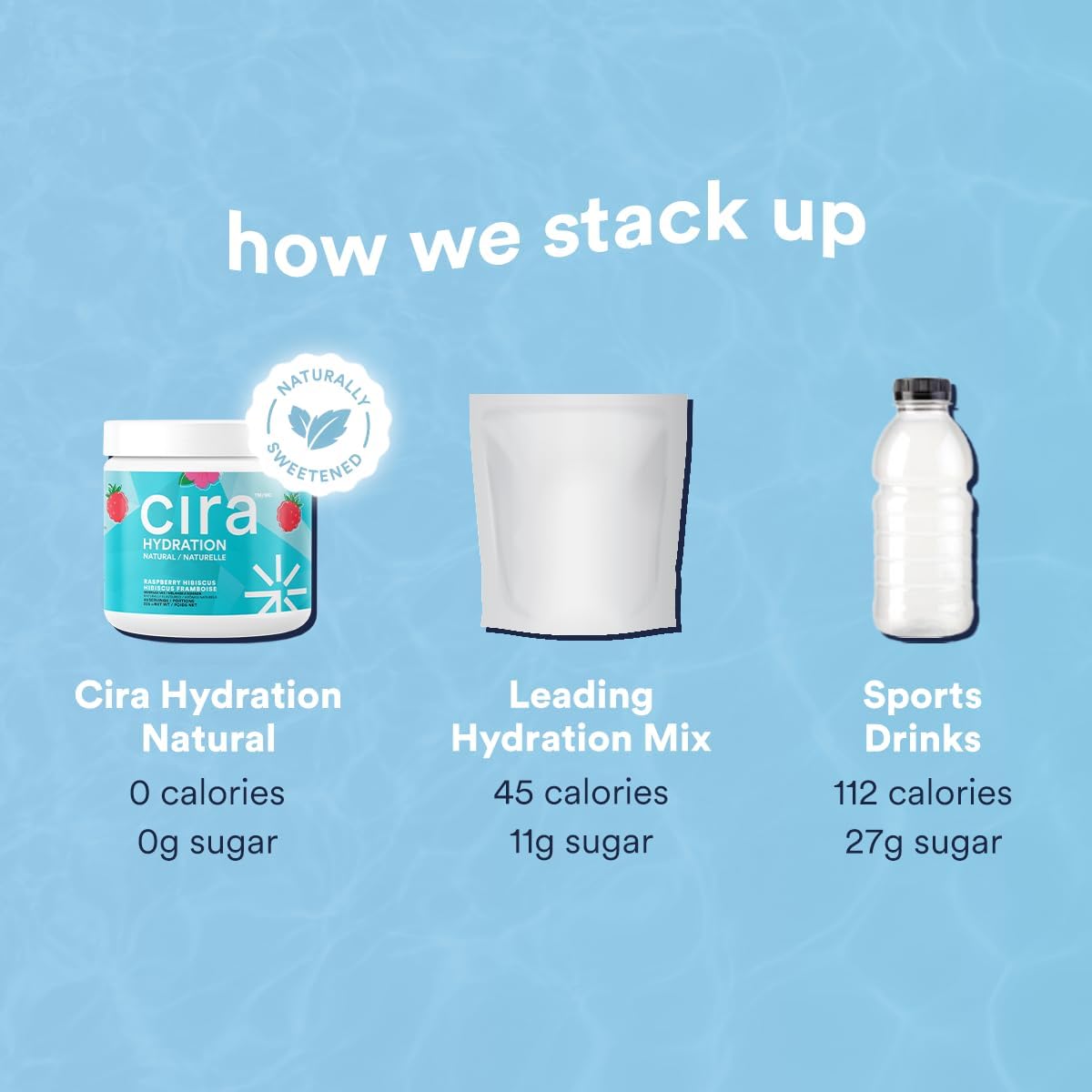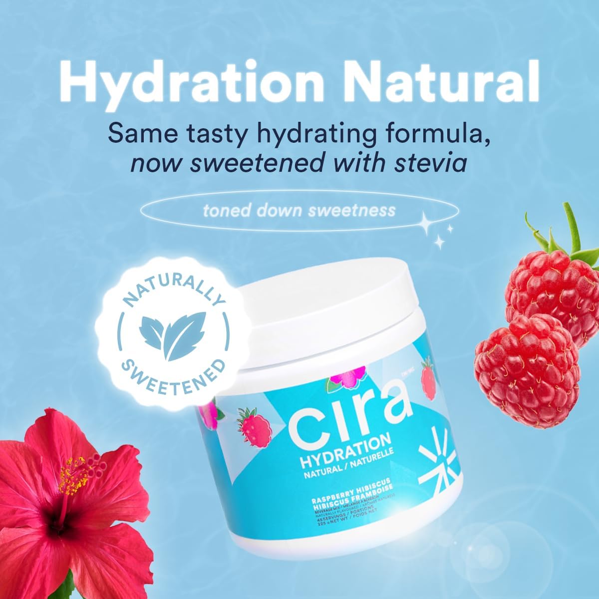 Cira Hydration Powder (45 Servings) - Natural Electrolyte Powder & Drink Mix, Naturally Flavored & Sweetened With Stevia & Himalayan Salt - Raspberry Hibiscus