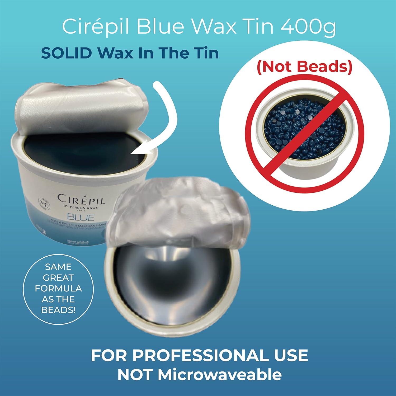 About this item OFTEN IMITATED, NEVER DUPLICATED: Cirepil Blue Wax IS THE ORIGINAL Professional Hard Wax Bead - FOR PROFESSIONAL USE ONLY CIREPIL'S FORMULAS : Cirepilâs patented polymer formulas, high in quality, ultra-fluid texture allow the wax to be used on all hair types whether short, shaved, long, soft or coarse. Cirepil waxes âshrink wrapâ hair for easy and complete removal THE WELL-KNOW BLUE WAX : Often imitated... NEVER duplicated! This classic from Cirepil is excellent for ALL areas of the body including brazilian/bikini but also arms, legs, face, underarms or back. It can be used on all hair and skin types thanks to its gel texture. It will never be sticky and the results are long-lasting. The low temperature heating is friendly for your skin, which also mean less pain & less redness. As always, gluten-free, paraben-free, vegan formula PROFITABLE & EASY TO USE : Cirepil Wax is easy and convenient. Save time and money, no strips needed! Low, gentle temperature allows a more comfortable application yet quick, easy removal HOW TO USE : Put tin in the Cirepil Heater (heater mandatory) until melted. After consultation, test wax temp. Prepare skin with the Cirepil Lotion & Oil, check hair growth. Apply wax thin, remove in opposite direction, close to skin. Finish with post-waxing products. -- STRIPS NOT NEEDED, EASY MANUAL REMOVAL -- See more product details, OFTEN IMITATED, NEVER DUPLICATED: Cirepil Blue Wax IS THE ORIGINAL Professional Hard Wax Bead - FOR PROFESSIONAL USE ONLY, CIREPIL'S FORMULAS : Cirepilâs patented polymer formulas, high in quality, ultra-fluid texture allow the wax to be used on all hair types whether short, shaved, long, soft or coarse. Cirepil waxes âshrink wrapâ hair for easy and complete removal, THE WELL-KNOW BLUE WAX : Often imitated... NEVER duplicated! This classic from Cirepil is excellent for ALL areas of the body including brazilian/bikini but also arms, legs, face, underarms or back. It can be used on all hair and skin types thanks to its gel texture. It will never be sticky and the results are long-lasting. The low temperature heating is friendly for your skin, which also mean less pain & less redness. As always, gluten-free, paraben-free, vegan formula, PROFITABLE & EASY TO USE : Cirepil Wax is easy and convenient. Save time and money, no strips needed! Low, gentle temperature allows a more comfortable application yet quick, easy removal, HOW TO USE : Put tin in the Cirepil Heater (heater mandatory) until melted. After consultation, test wax temp. Prepare skin with the Cirepil Lotion & Oil, check hair growth. Apply wax thin, remove in opposite direction, close to skin. Finish with post-waxing products. -- STRIPS NOT NEEDED, EASY MANUAL REMOVAL --