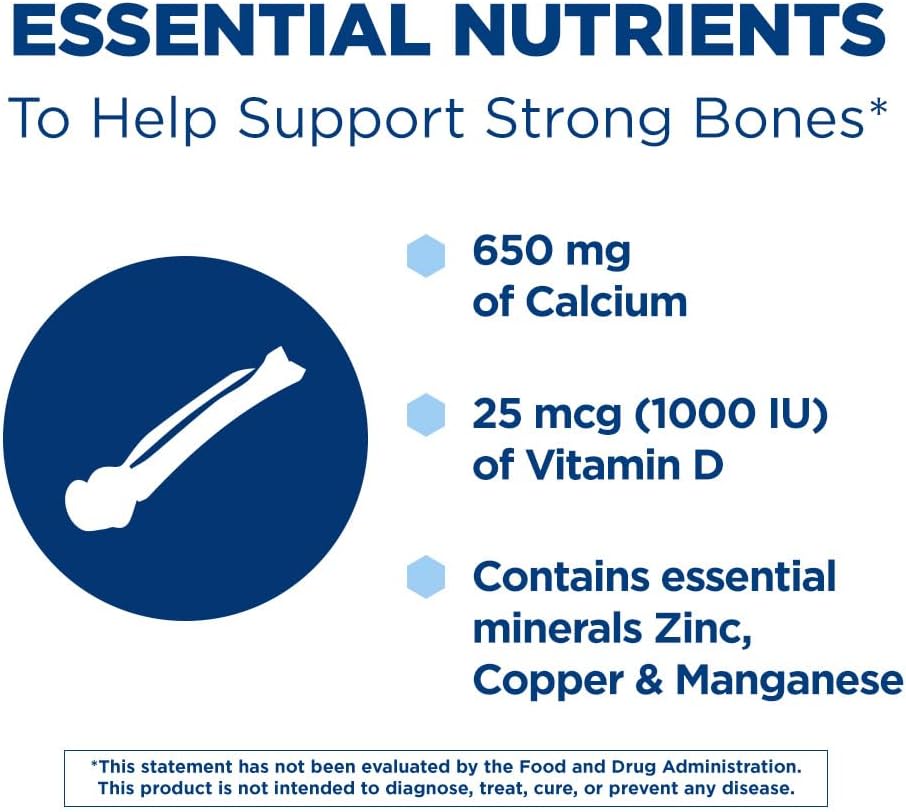 MAXIMUM STRENGTH: Contains 650 mg of Calcium Citrate with 25 mcg (1000 IU) of vitamin D3 per serving that helps absorb dietary calcium; also contains essential minerals – zinc, copper and manganese to support bone health