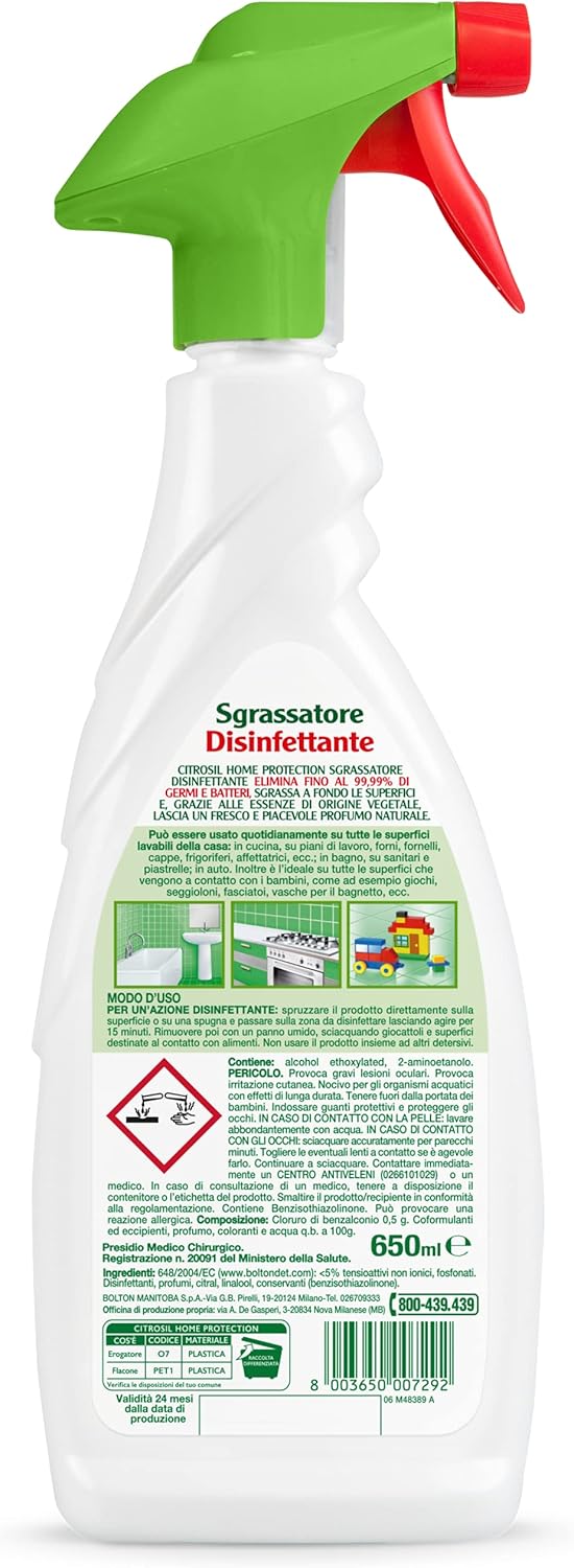 About this item Citrosil home protection eliminates up to 99.99% of germs and bacteria Cleans deep Leaves a pleasant scent of lemon Disinfects large and small surfaces Disinfects all washable surfaces › See more product details,Citrosil home protection eliminates up to 99.99% of germs and bacteria,Cleans deep,Leaves a pleasant scent of lemon,Disinfects large and small surfaces,Disinfects all washable surfaces